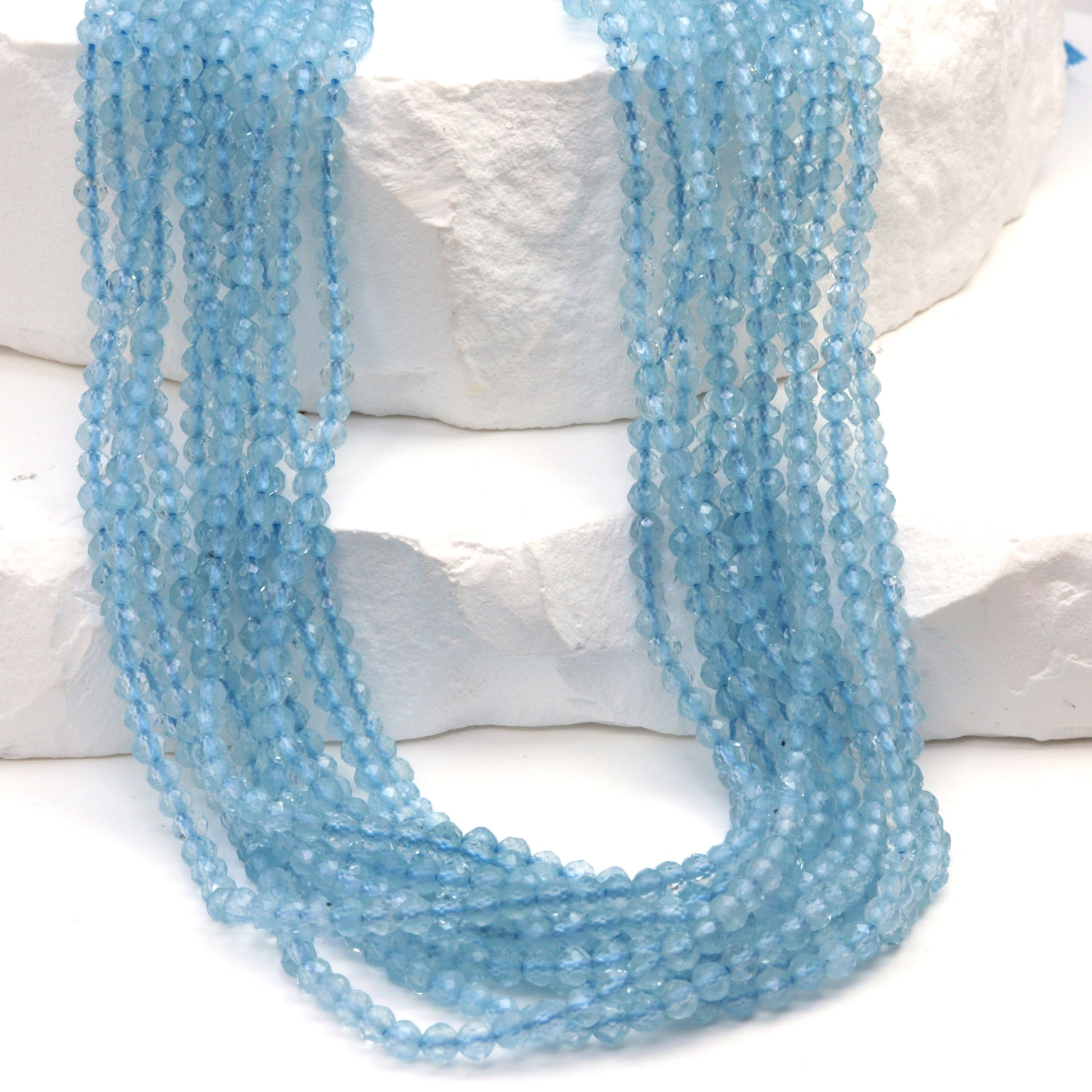 Blue Milky Aquamarine 2.5mm Faceted Rounds Bead Strand
