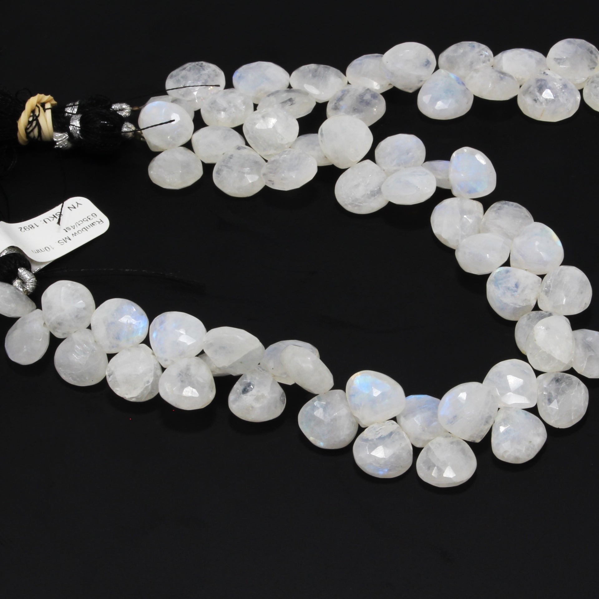 Blue Rainbow Moonstone 10mm Faceted Heart Shaped Briolettes Bead Strand