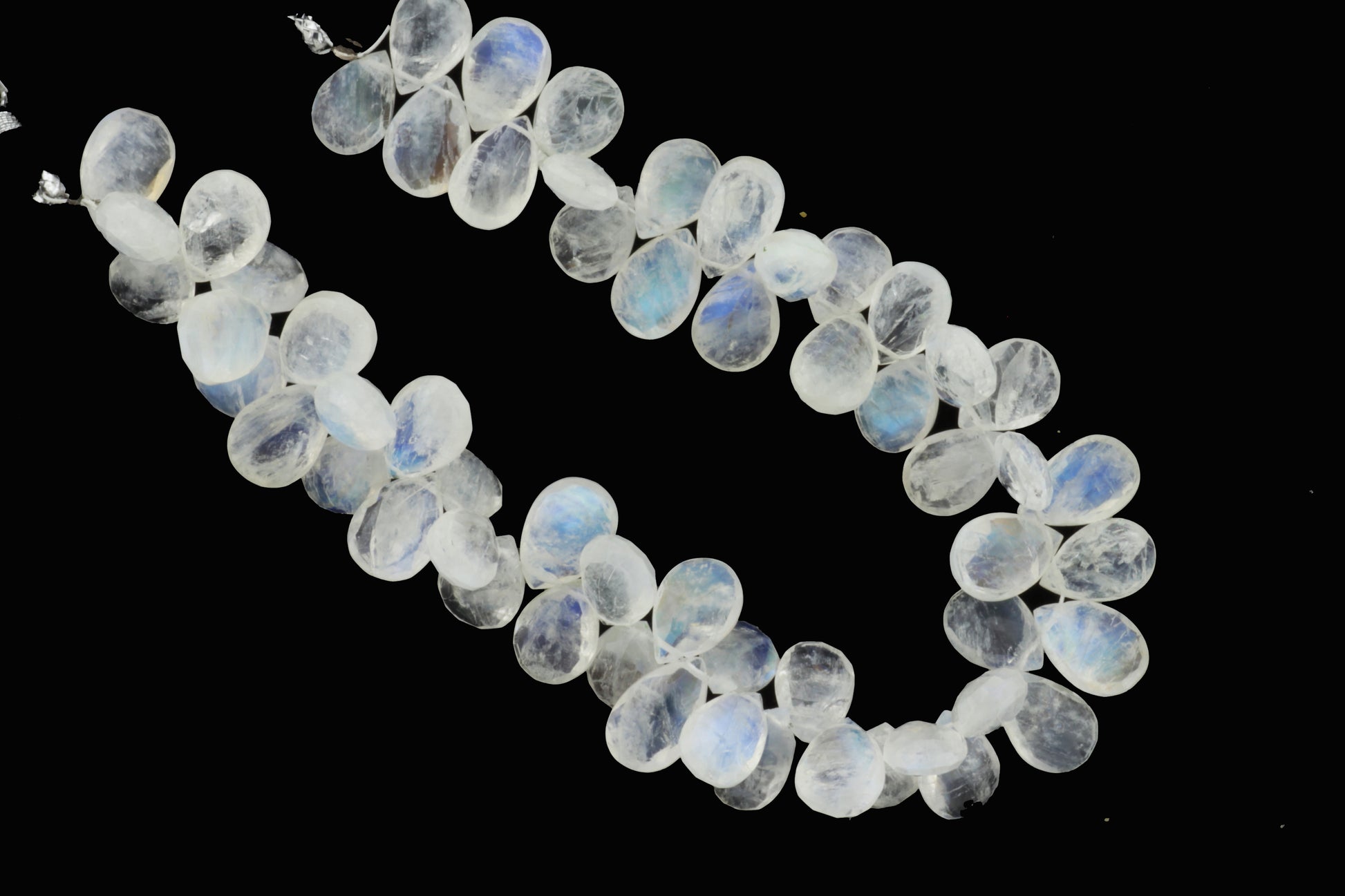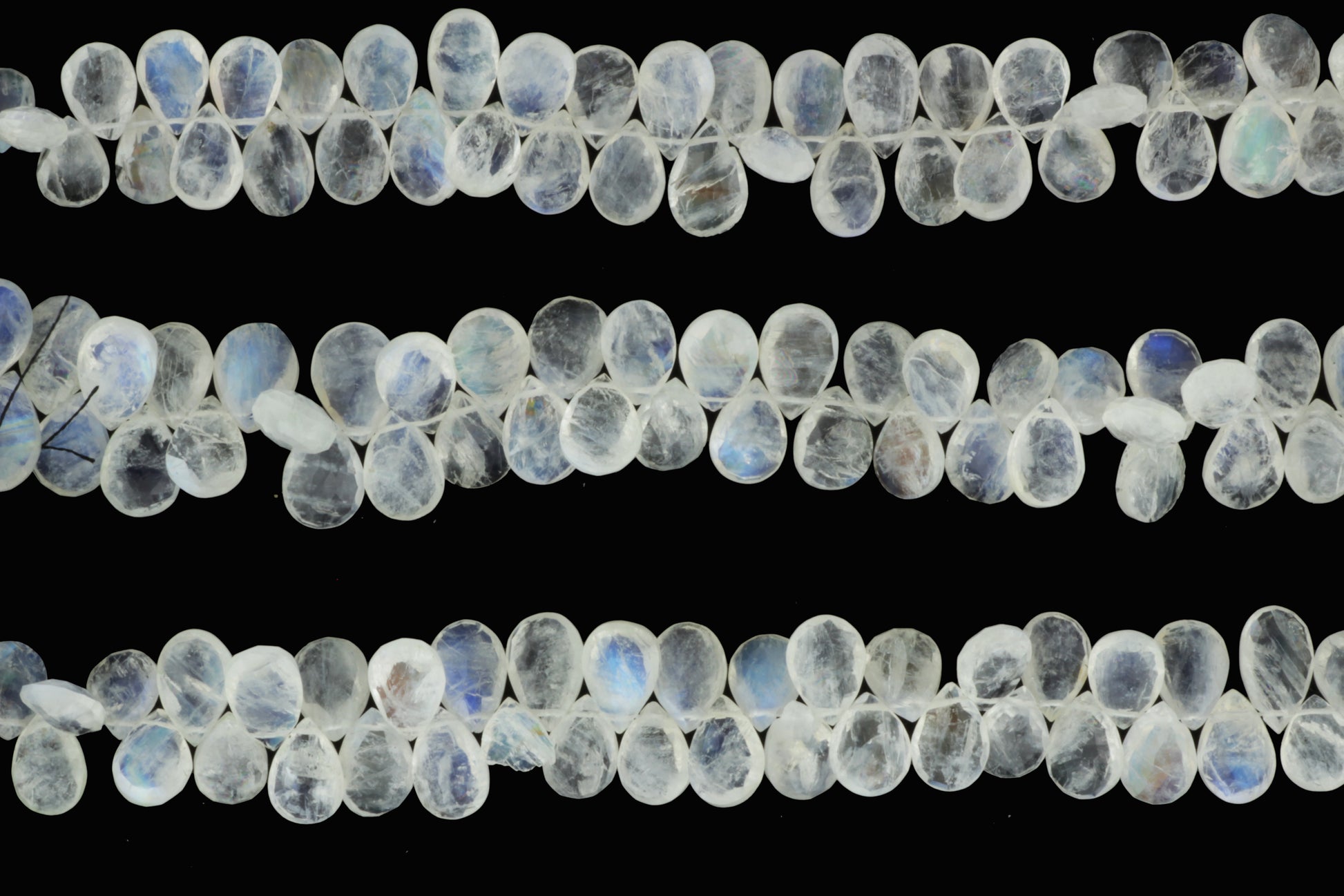 Blue Rainbow Moonstone 10x7mm Faceted Pear Shaped Briolettes Bead Strand