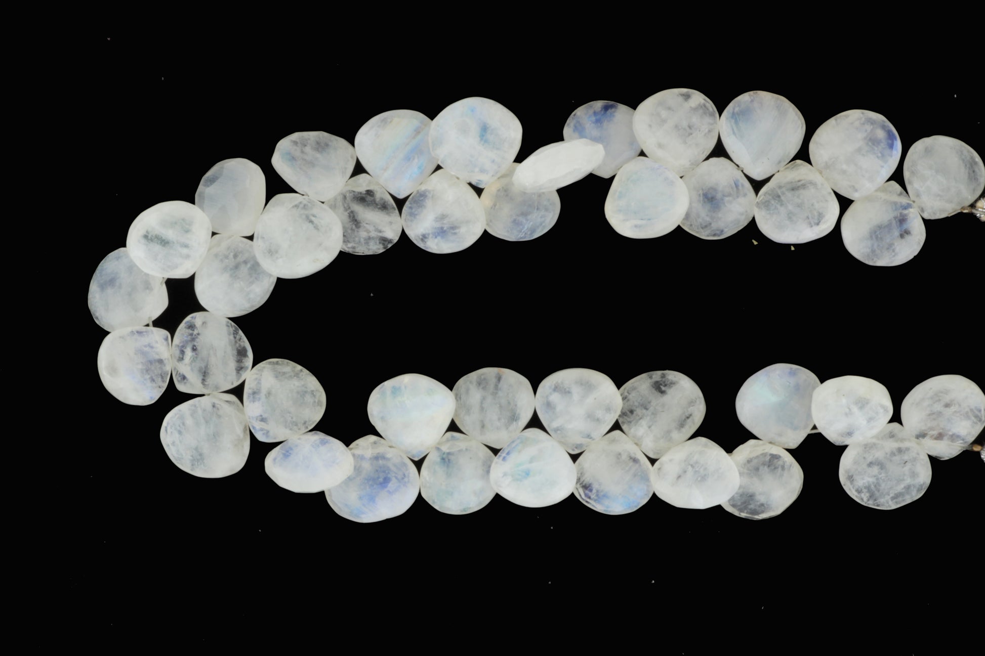Blue Rainbow Moonstone 11mm Faceted Heart Shaped Briolettes