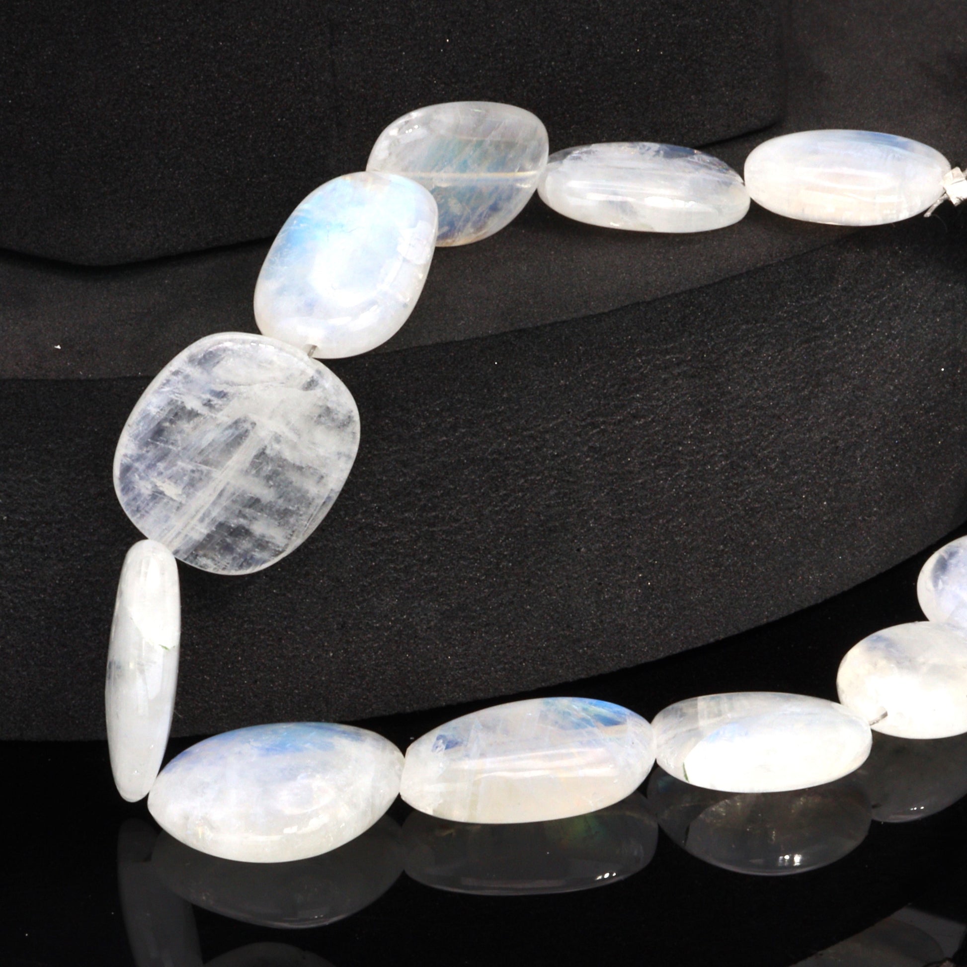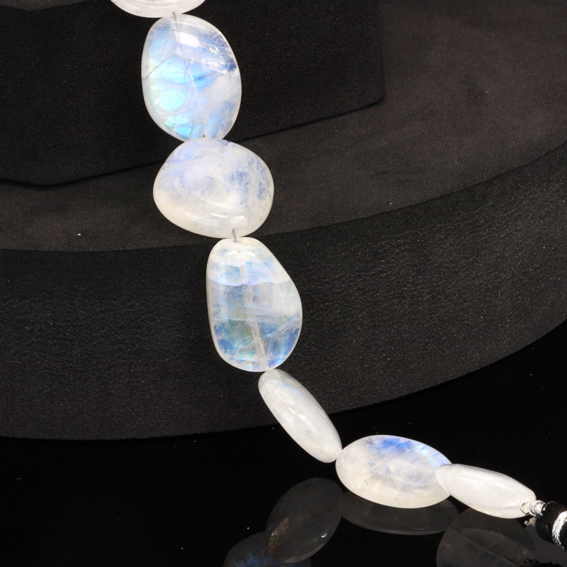 Embrace the ethereal beauty of our Rainbow Moonstone Smooth Nugget Beads, a captivating addition to any high-end jewelry collection. Each strand is a masterpiece of nature, featuring large, organically shaped nugget beads that glow with an enchanting play of colors. These rainbow moonstone beads, with their smooth, polished surfaces, capture and reflect light, revealing an iridescent spectrum of blues, purples, and soft whites, akin to moonlight dancing on water. The substantial size of these nuggets makes them a bold statement in any jewelry piece, perfect for creating eye-catching necklaces or standout bracelets. Rainbow moonstone, celebrated for its connection to intuition and feminine energy, not only offers visual splendor but also imbues your designs with a sense of mystique and serenity. Ideal for designers seeking to craft jewelry that tells a story, our Rainbow Moonstone Smooth Nugget Beads are a treasure trove of inspiration, promising to bring a touch of magic and sophistication to your creations.