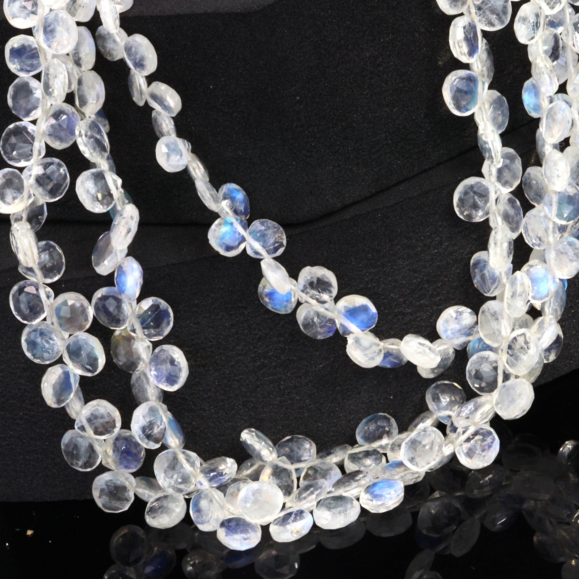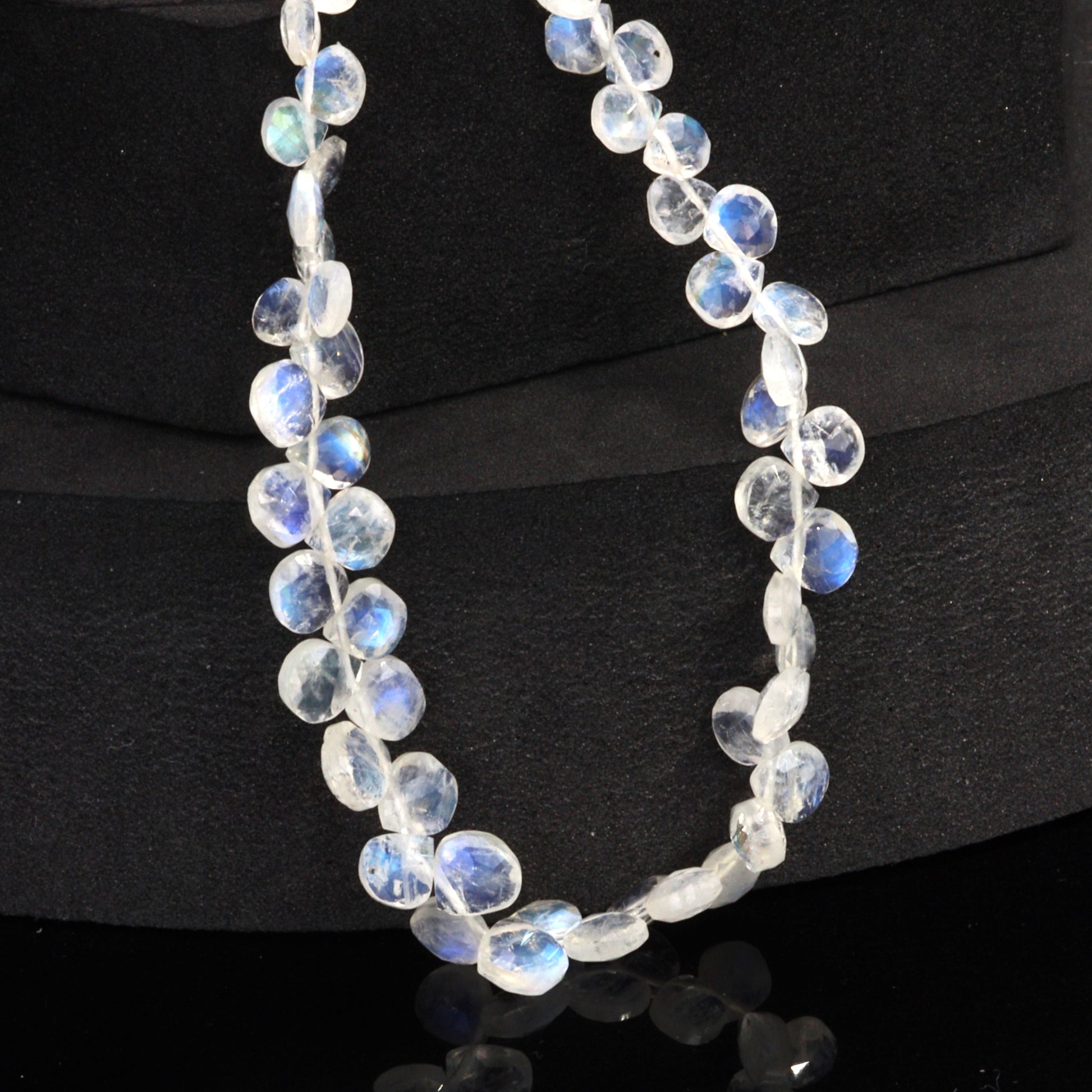 Blue Rainbow Moonstone 5mm Faceted Heart Shaped Briolettes Bead Strand