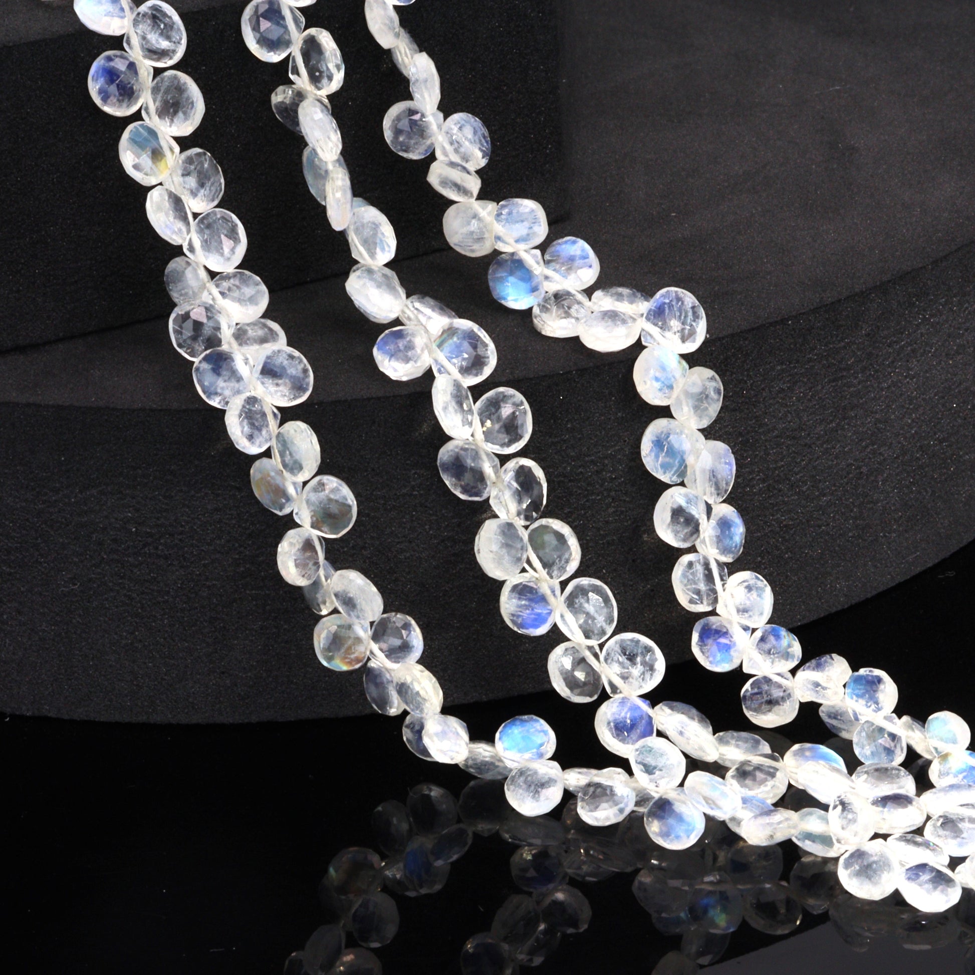 Blue Rainbow Moonstone 5mm Faceted Heart Shaped Briolettes