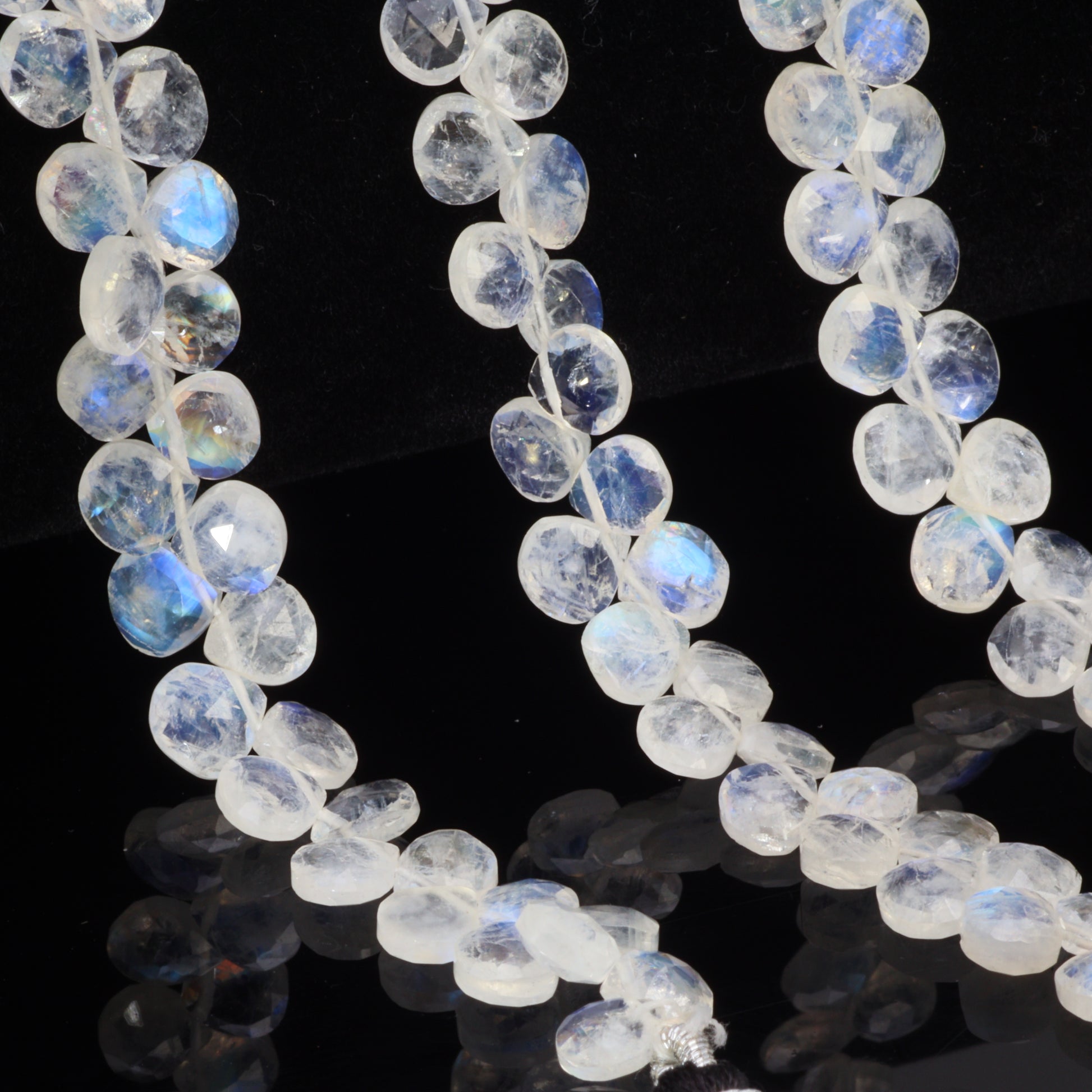 Blue Rainbow Moonstone 6mm Faceted Heart Shaped Briolettes Bead Strand