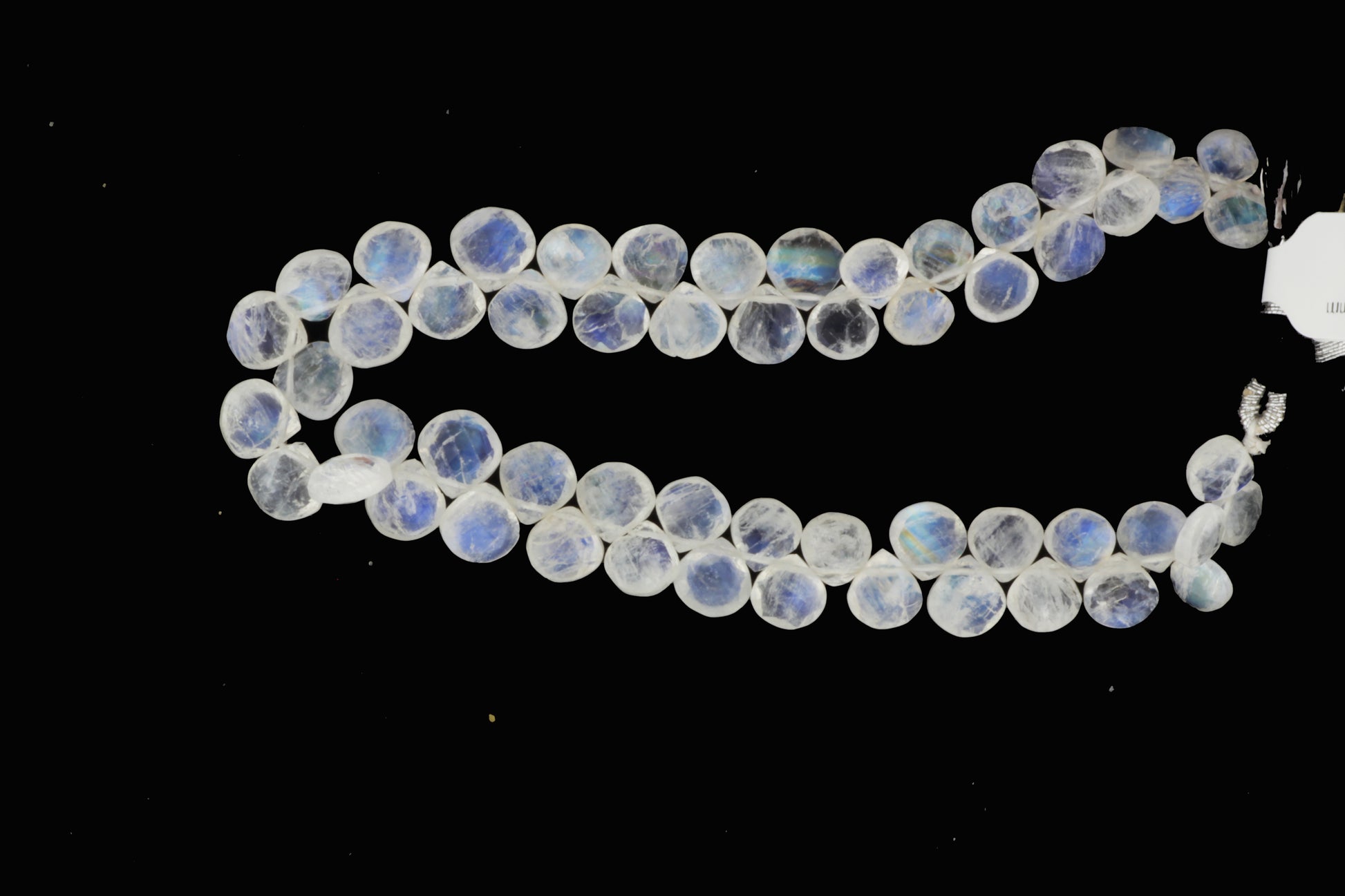 Blue Rainbow Moonstone 7mm Faceted Heart Shaped Briolettes Bead Strand