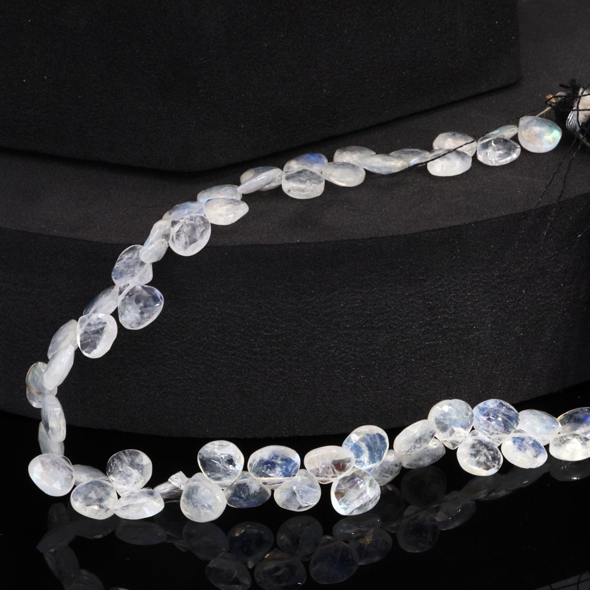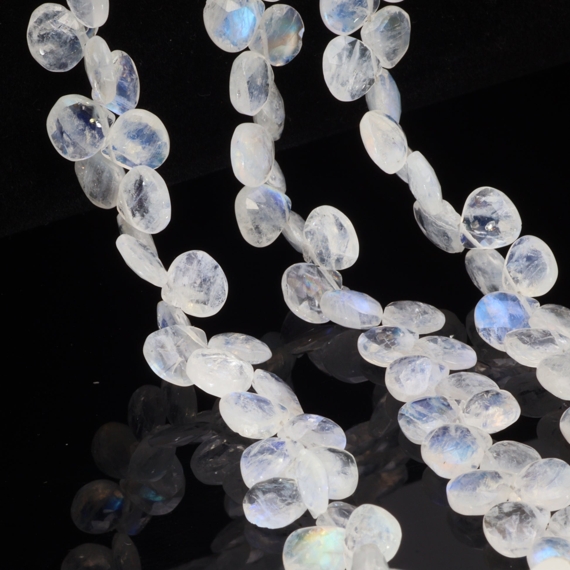 Blue Rainbow Moonstone 7mm Faceted Heart Shaped Briolettes Bead Strand