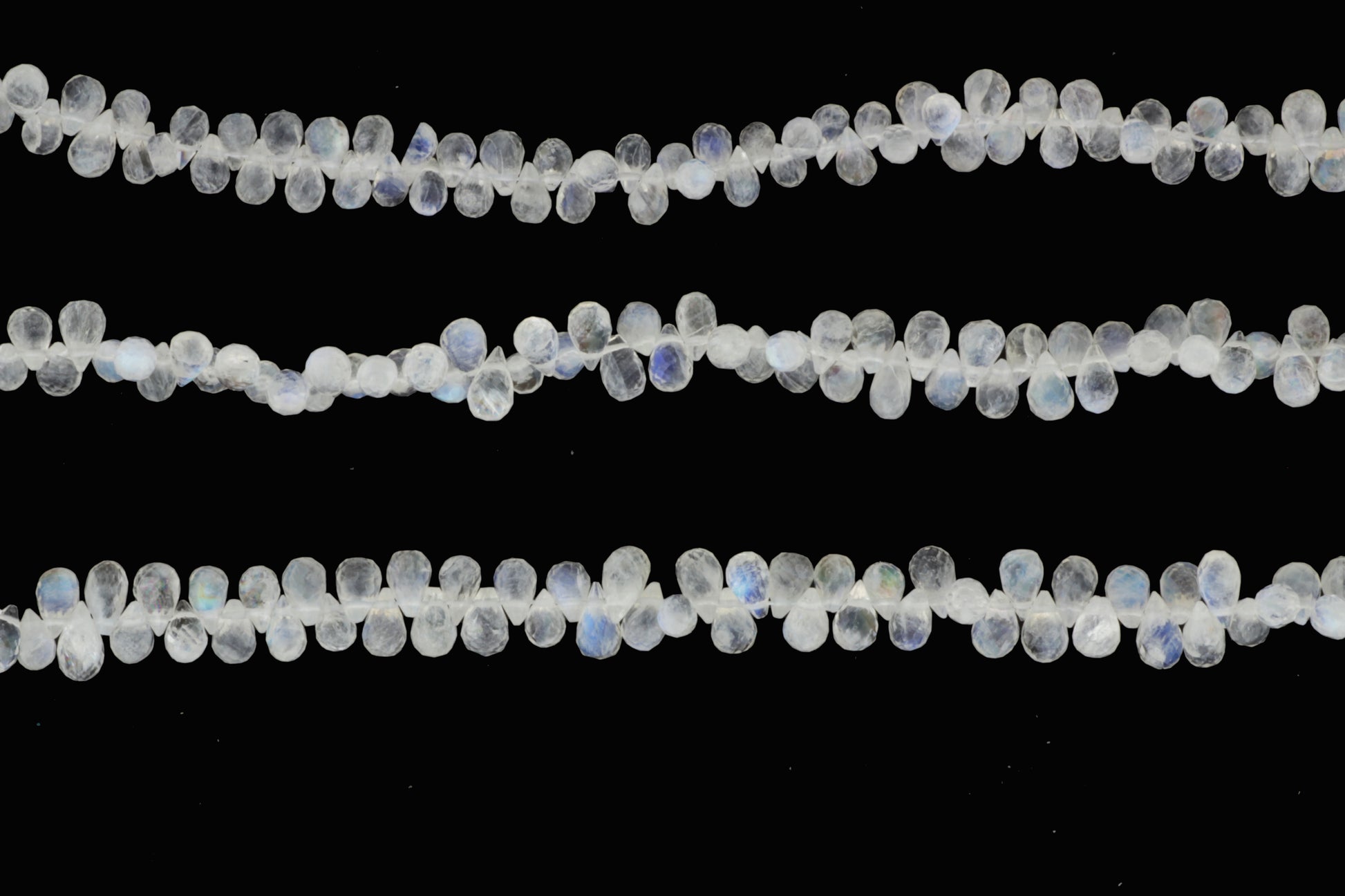 Blue Rainbow Moonstone 7x5mm Faceted Teardrop Briolettes Bead Strand