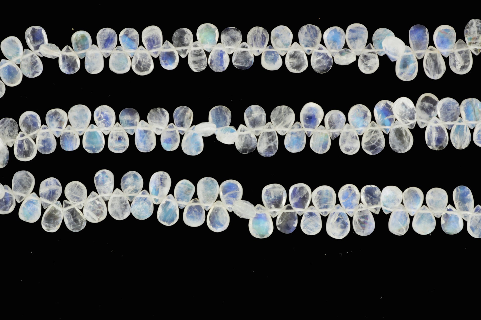Blue Rainbow Moonstone 8x5mm Faceted Pear Shaped Briolettes Bead Strand