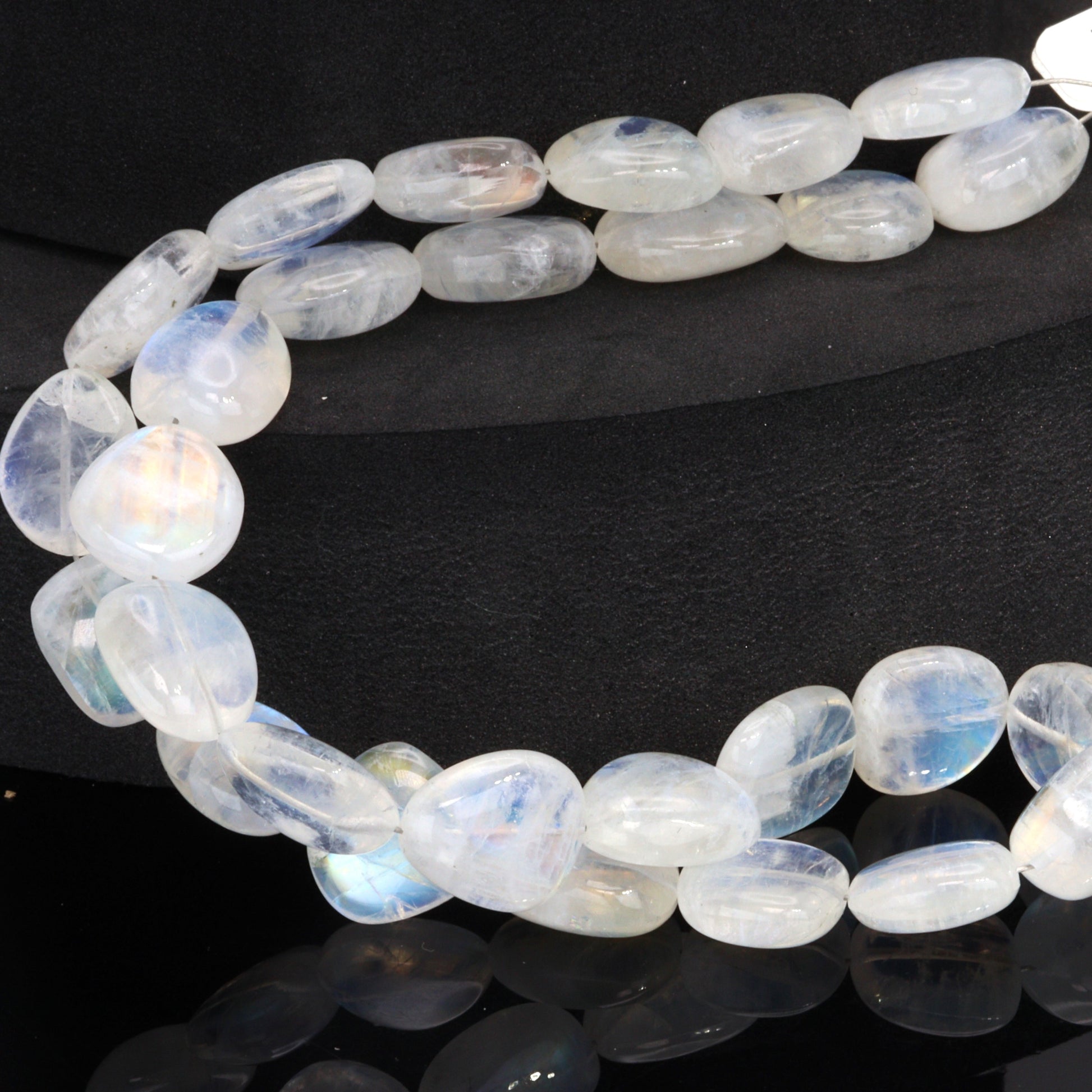 Blue Rainbow Moonstone 9x7mm - 16x12mm Smooth Nuggets Bead Strand