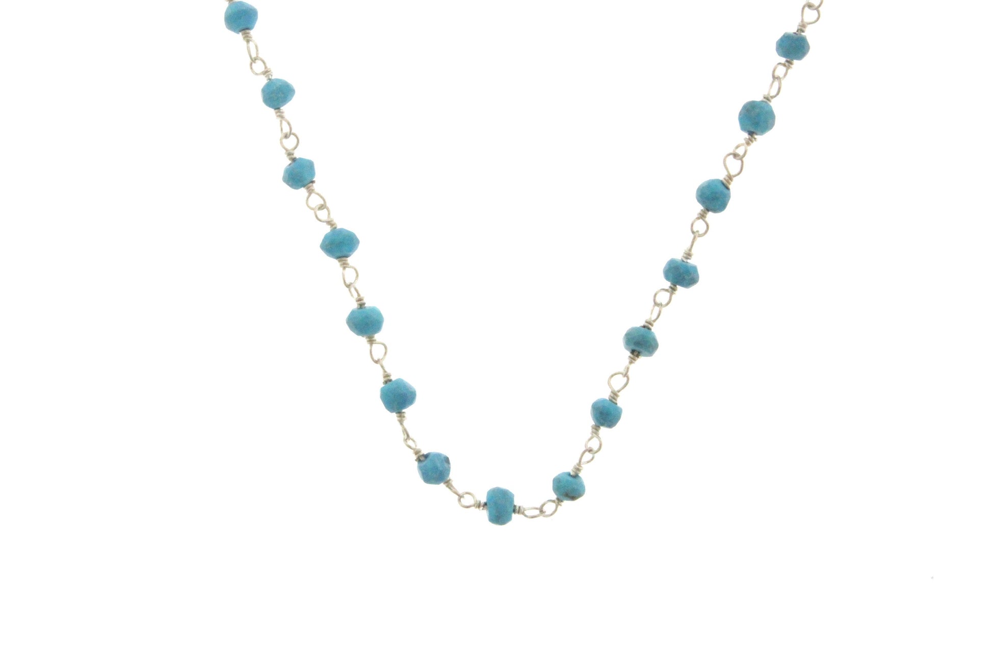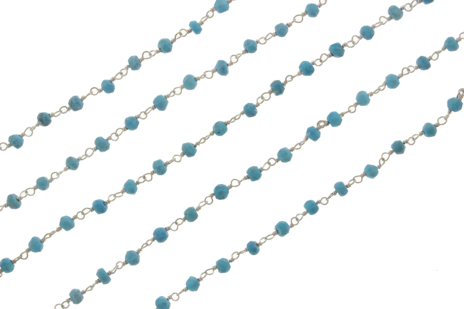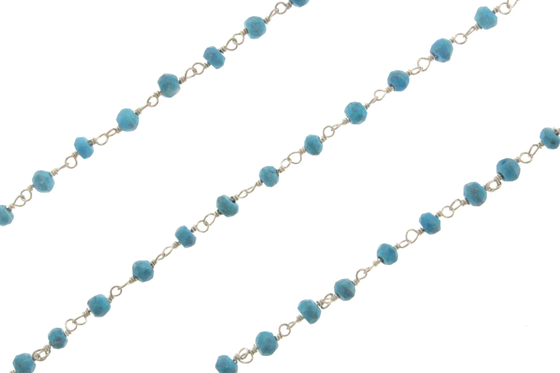 Blue Turquoise (R) 4mm Faceted Rondelles Rosary Chain Sterling Silver Wire Wrap Chain by the Foot
