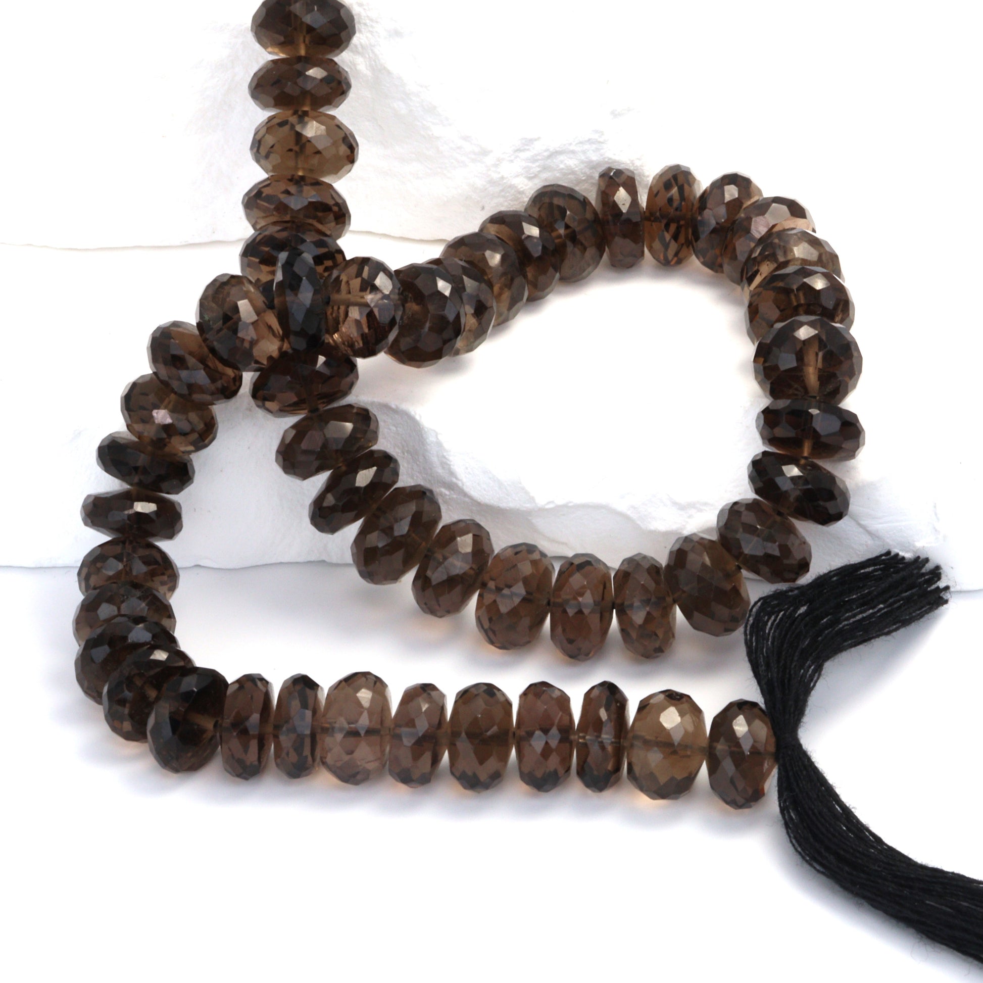 Brown Smoky Quartz 9mm Faceted Rondelles Bead Strand
