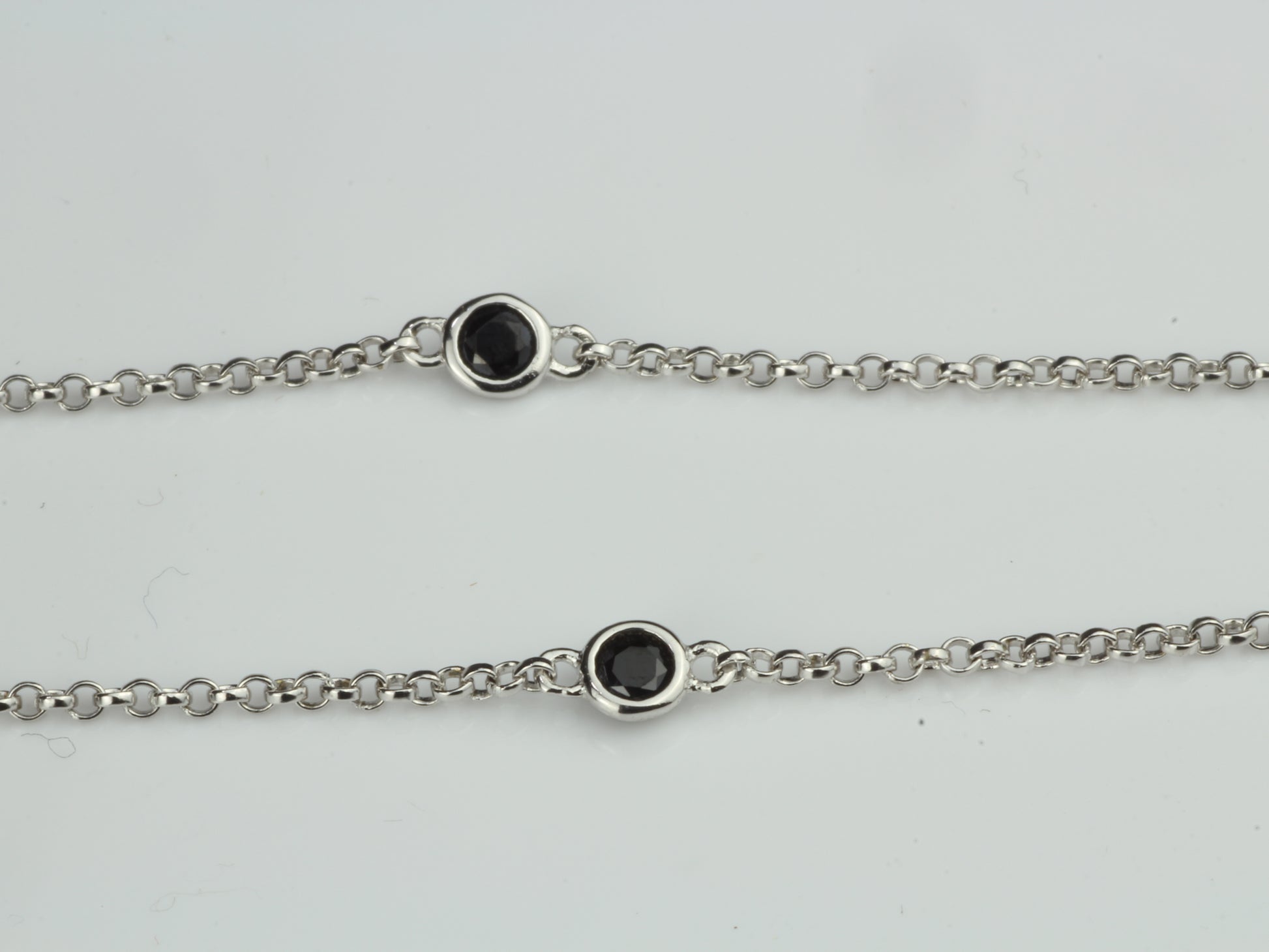 By the Yard Station Necklace with Floating Bezel Black Spinel Sterling Silver 18 inch