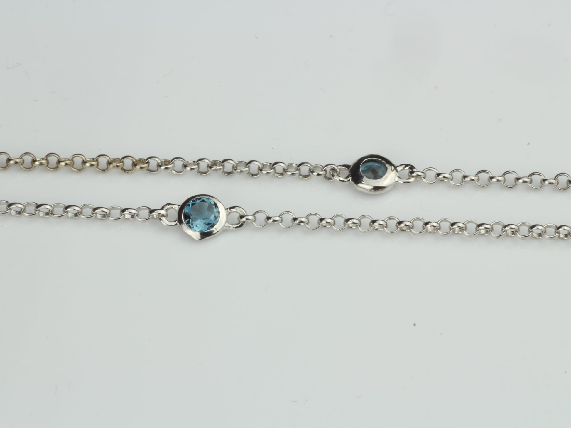 By the Yard Station Necklace with Floating Bezel London Blue Topaz Sterling Silver 18"
