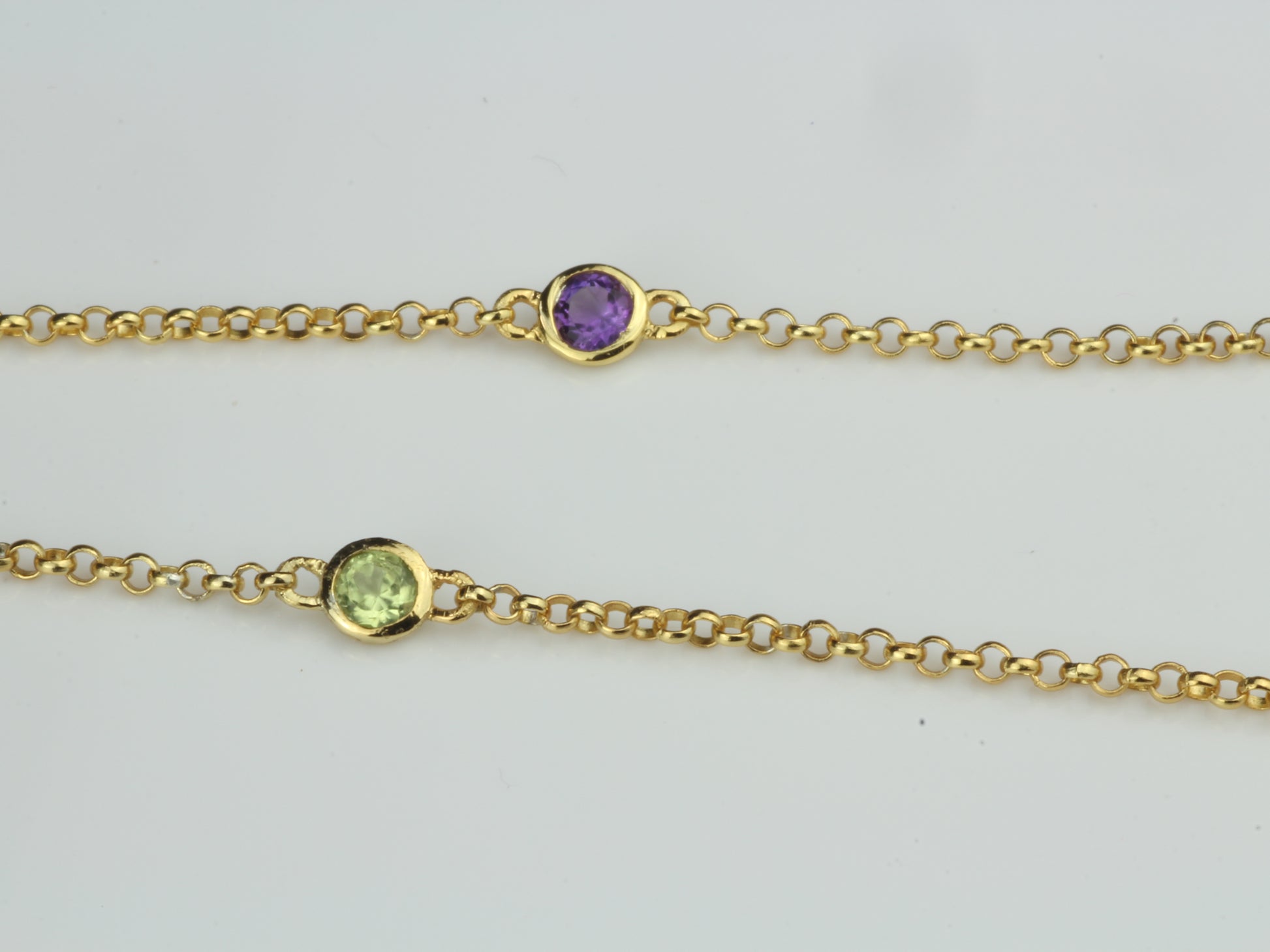 By the Yard Station Necklace with Floating Bezel Rainbow Multi Semi Precious Sterling Silver with Gold Plating 18 inch
