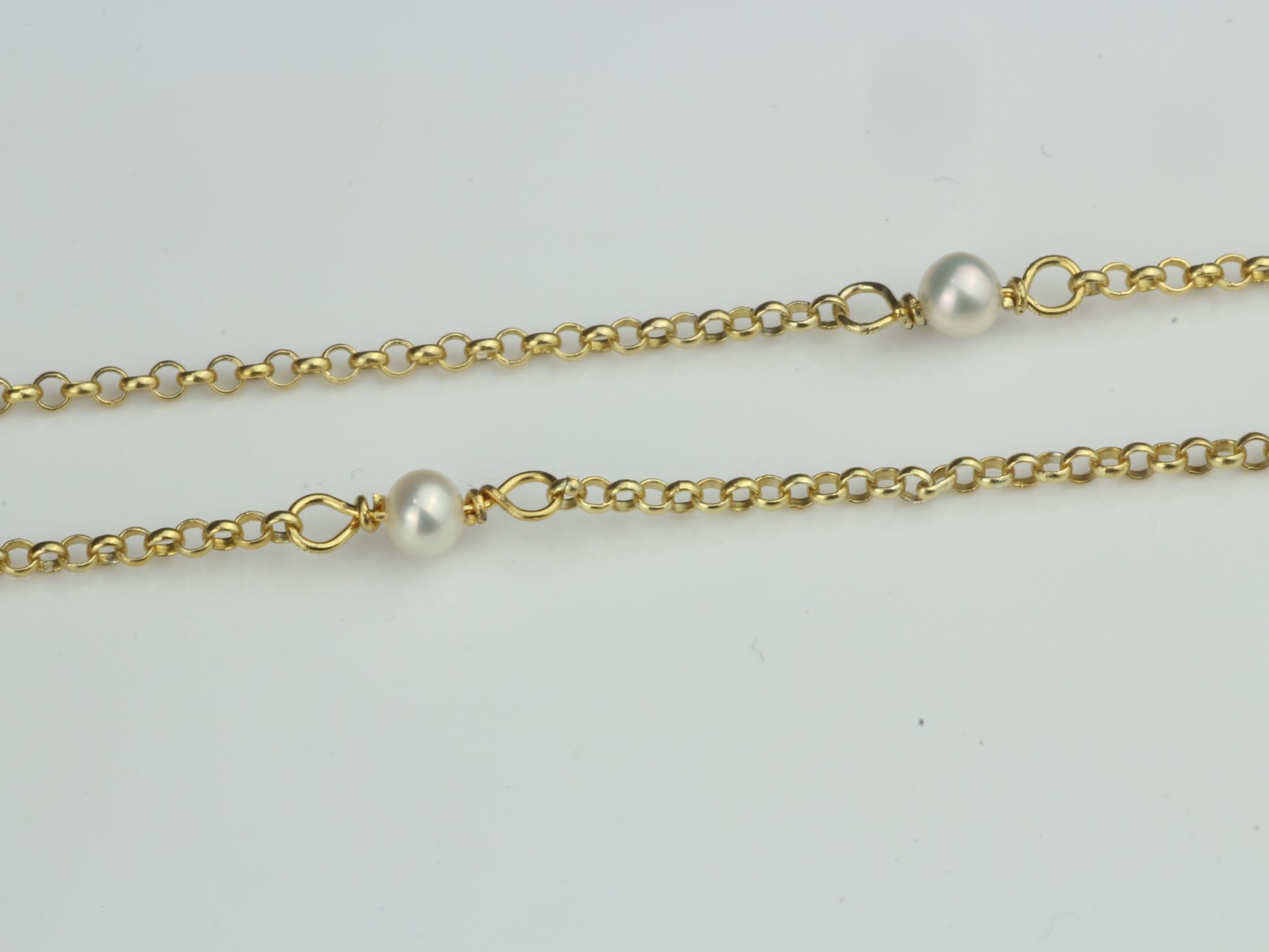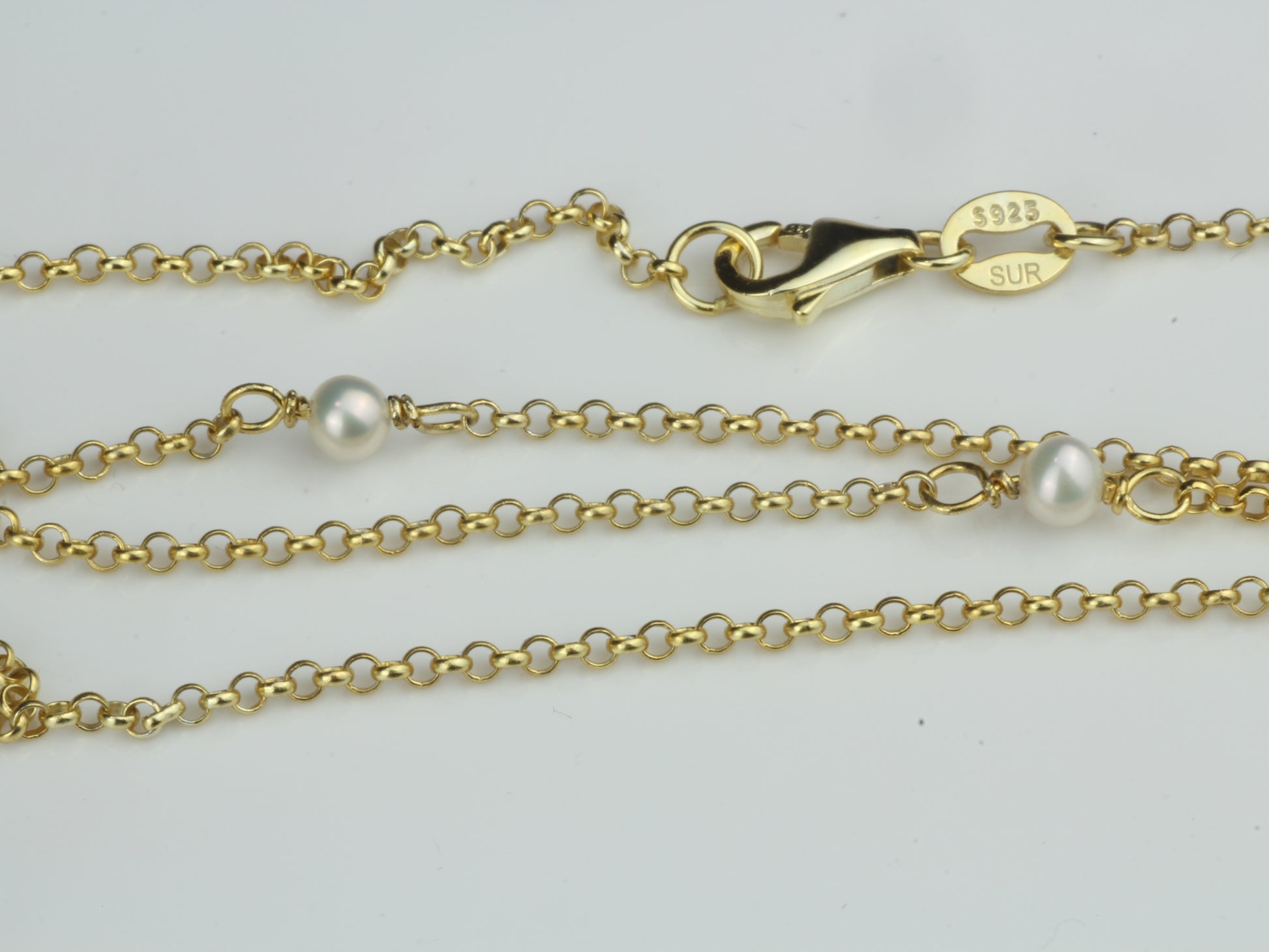 By the Yard Station Necklace with Floating Pearl Sterling Silver with Gold Plating 18 inch