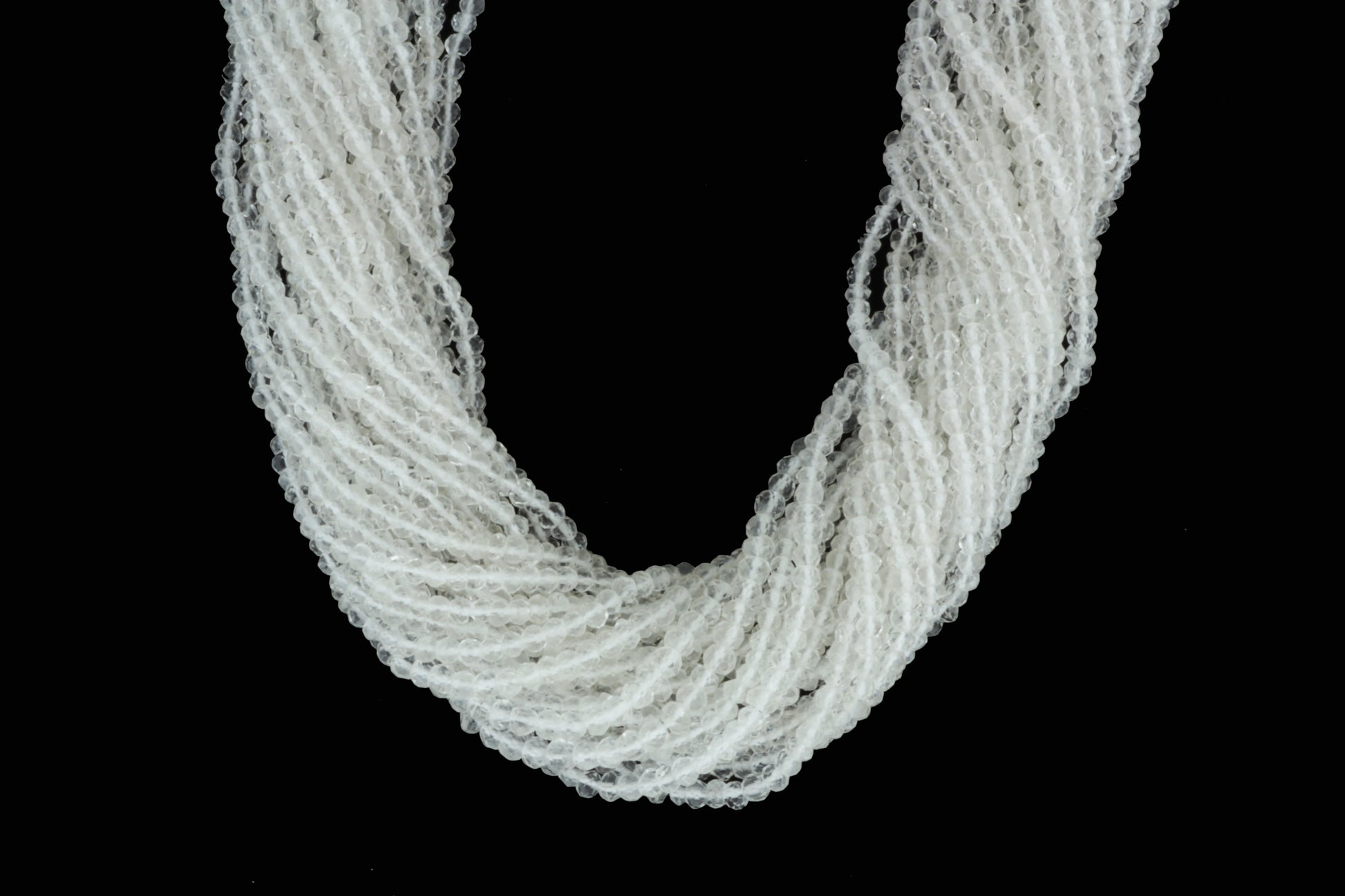 Clear Rock Crystal Quartz 3mm Hand Faceted Rondelles Bead Strand