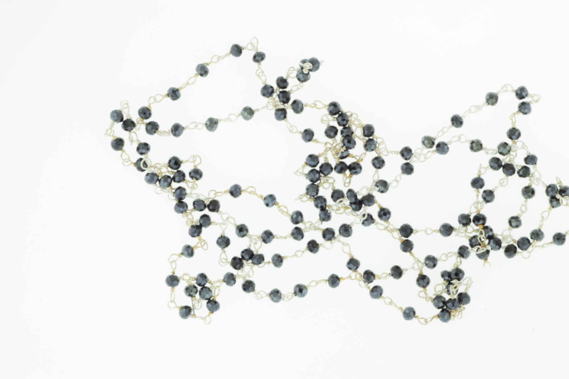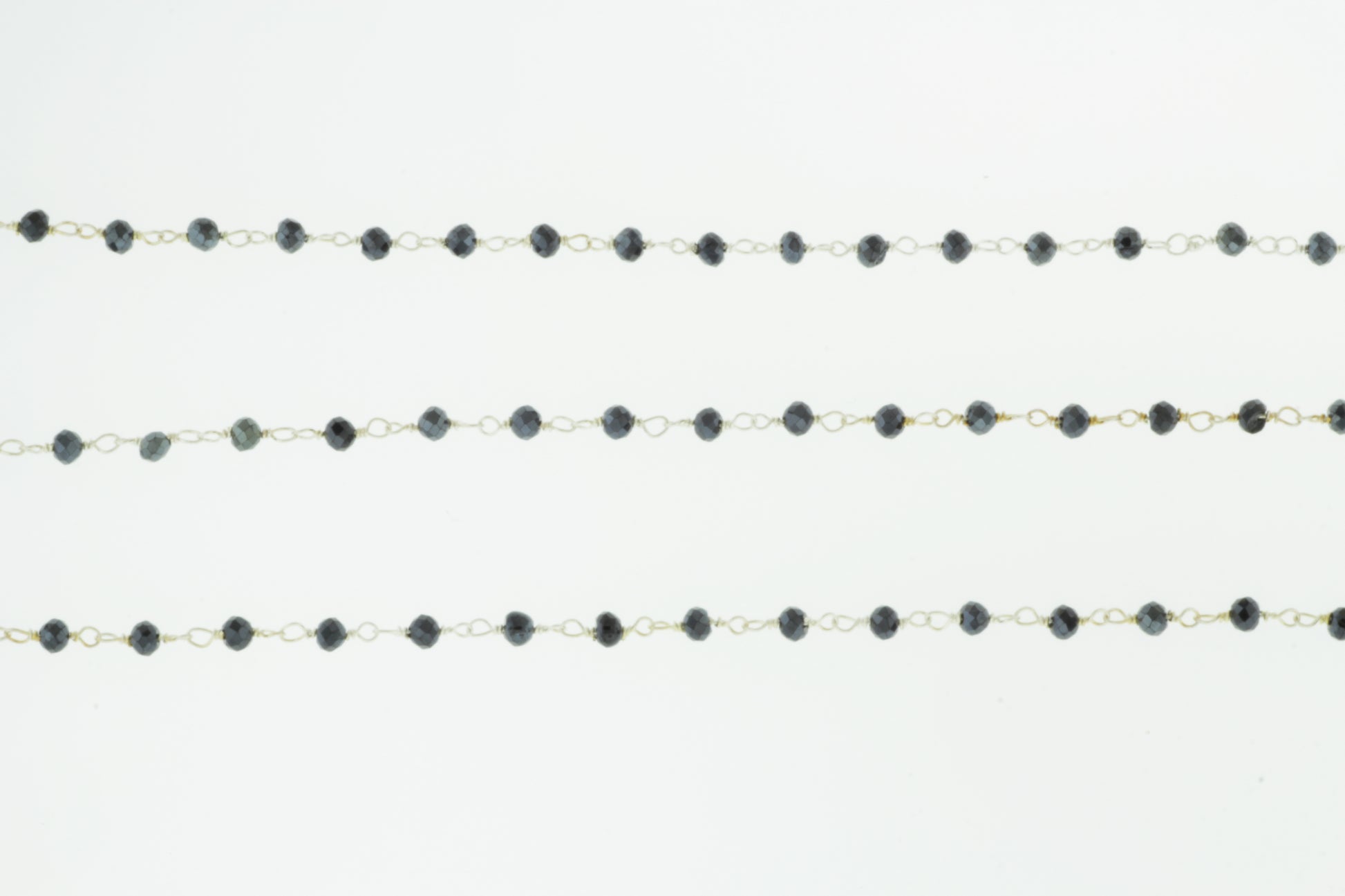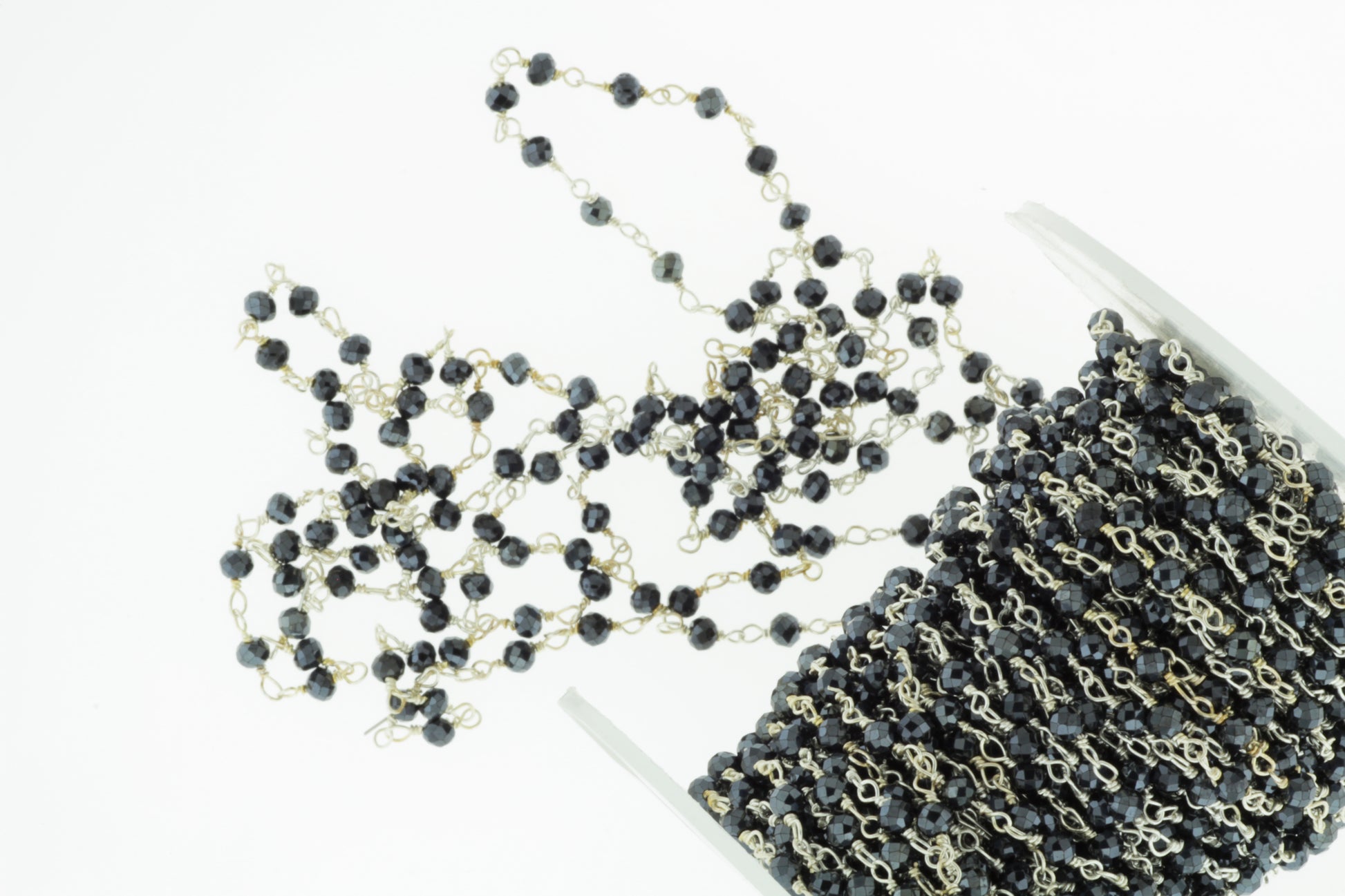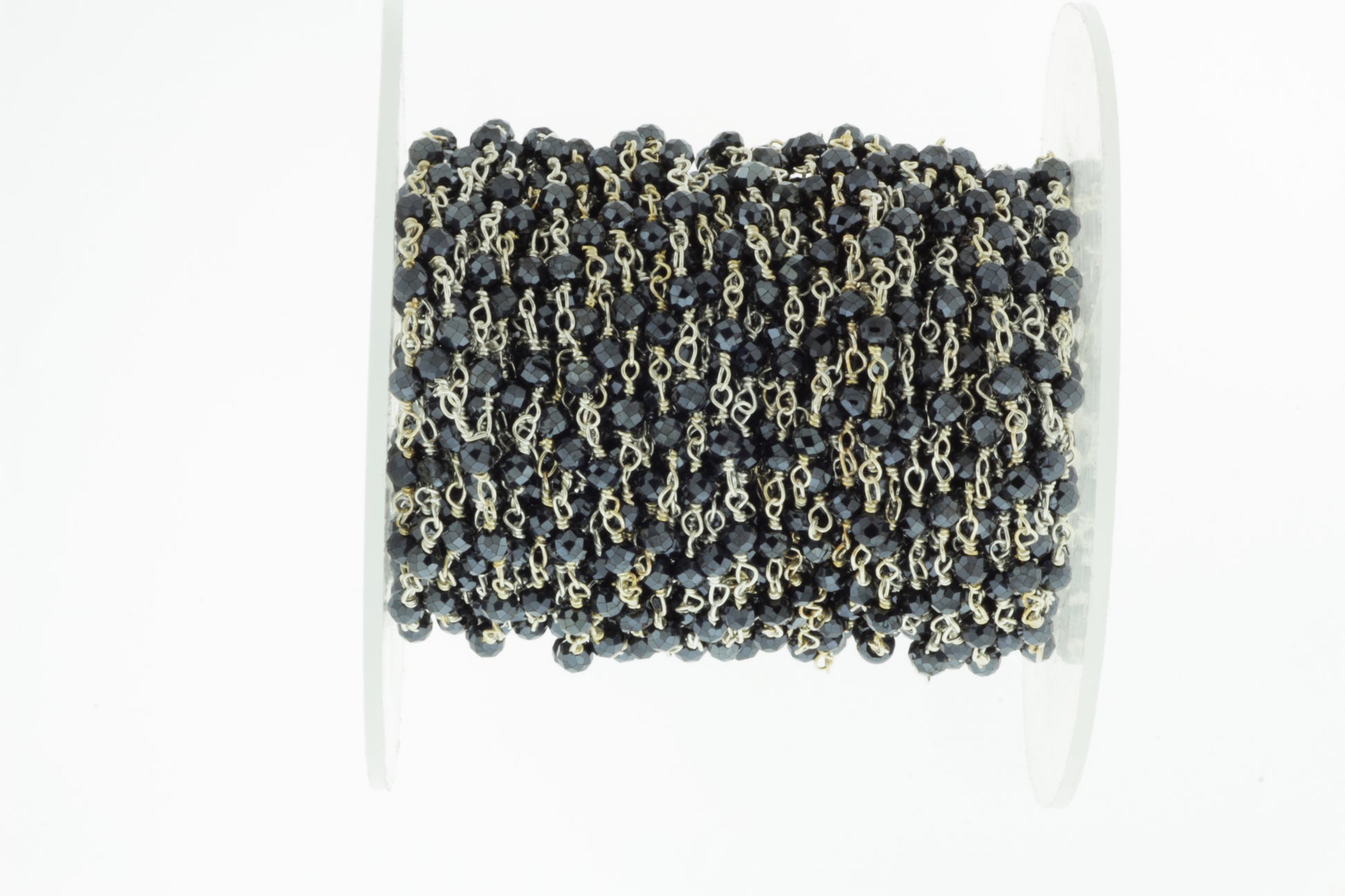 Coated Black Spinel 2mm Faceted Rondelles Rosary Chain Sterling Silver Wire Wrap Chain by the Foot