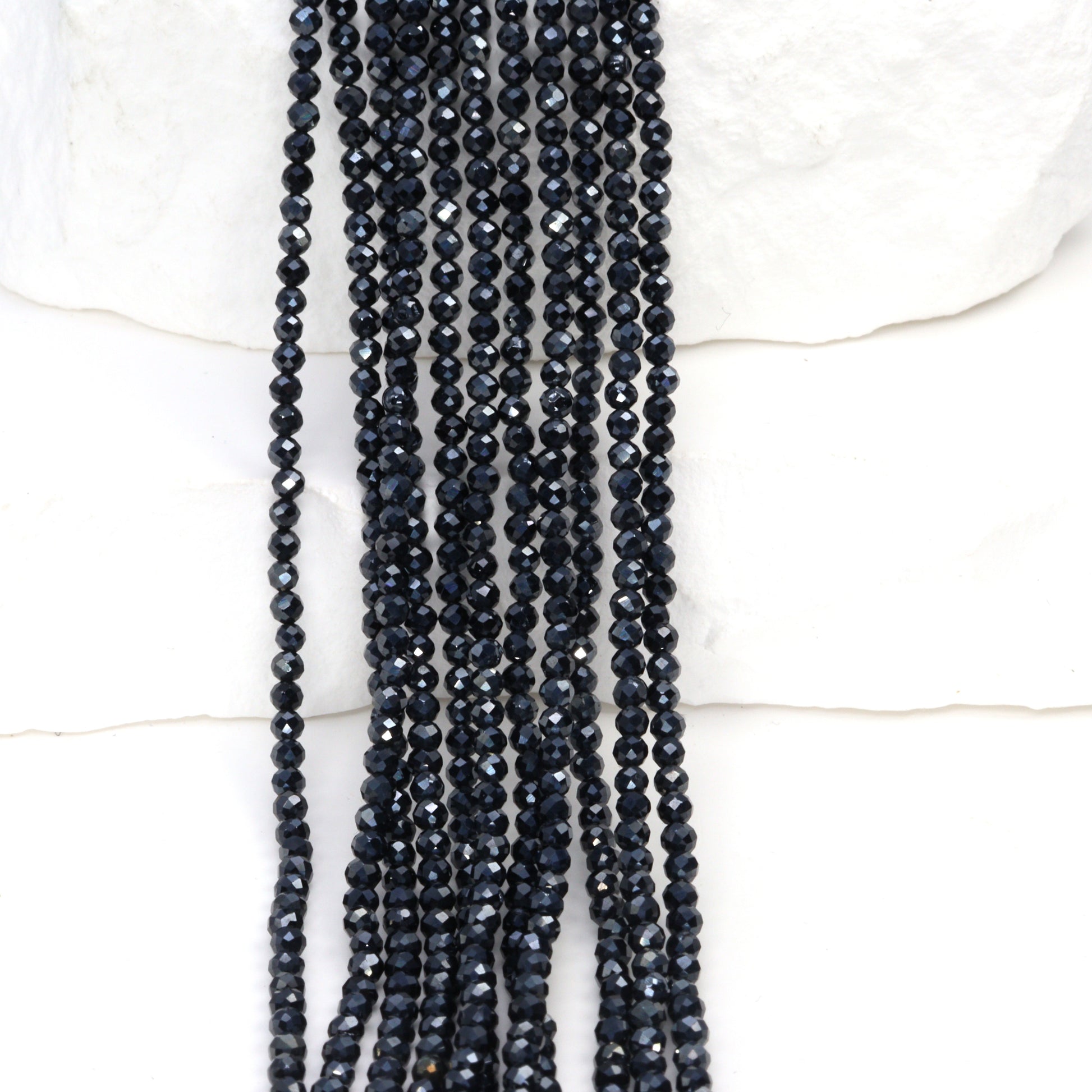 Coated Black Spinel 2mm Faceted Rounds Bead Strand