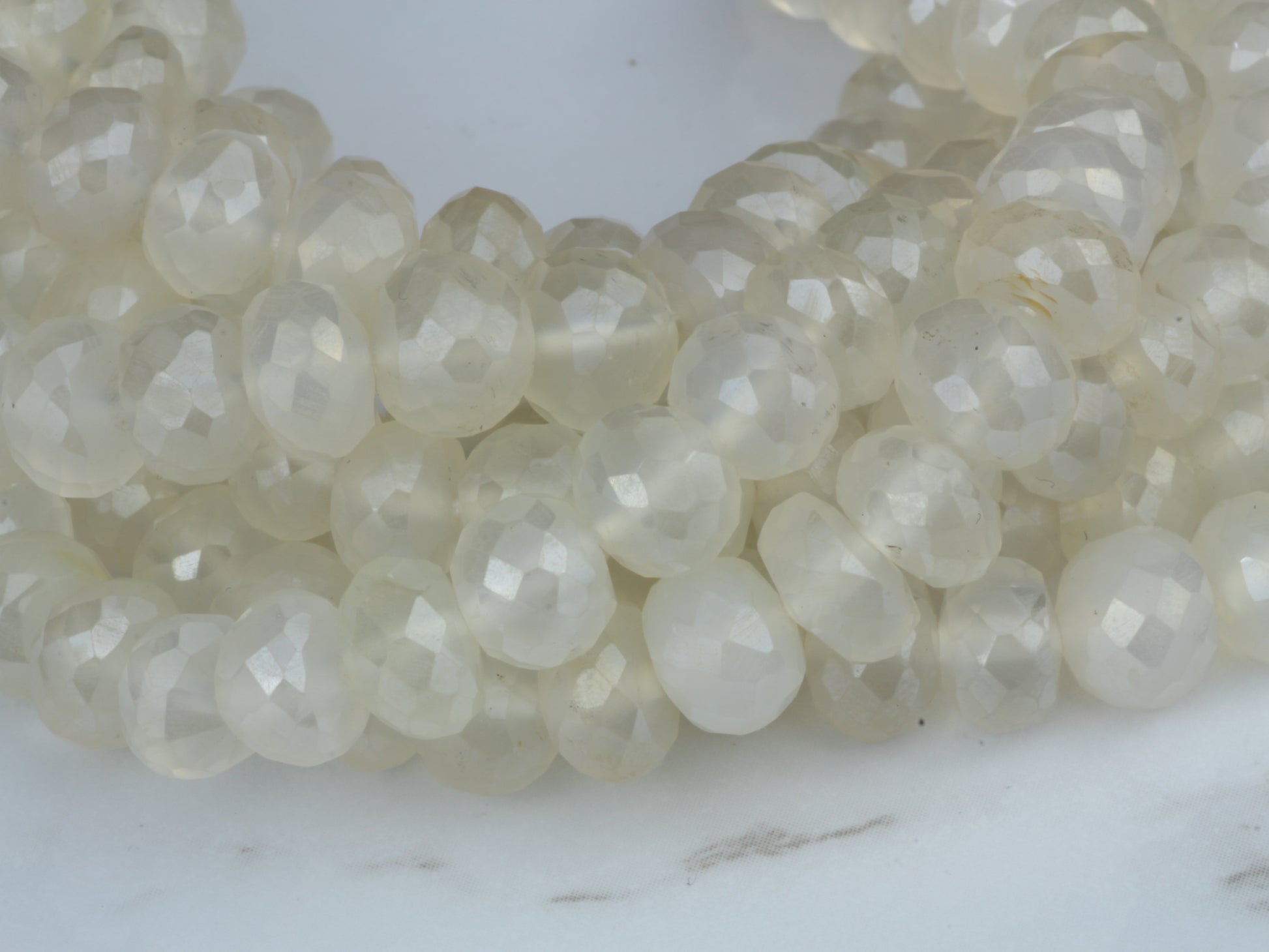 Coated White Chalcedony 7mm Faceted Rondelles Bead Strand