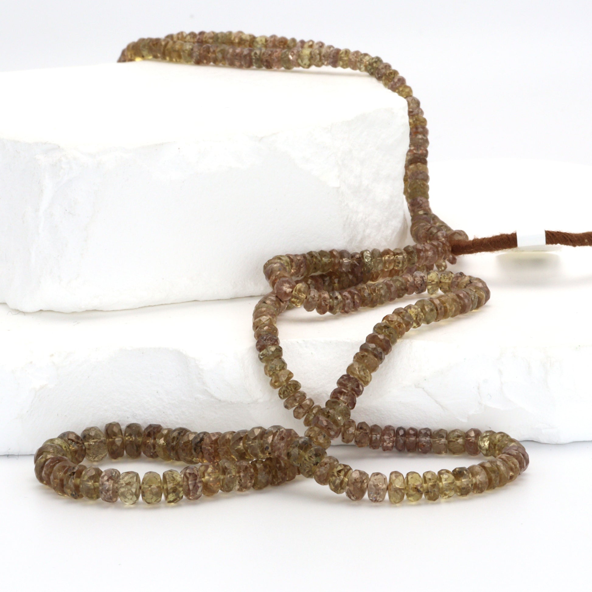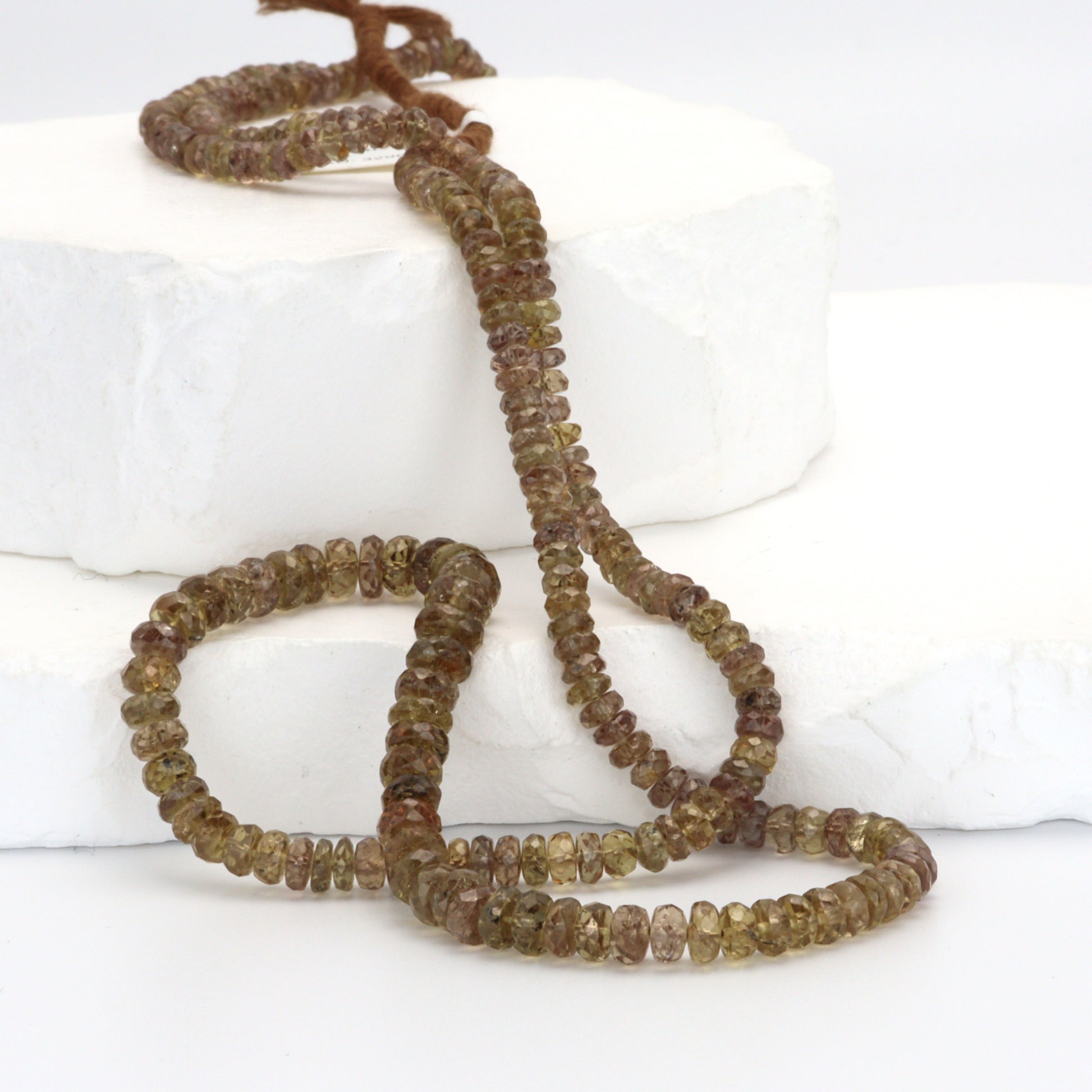 Elevate your jewelry collection with the exquisite allure of our Brown Color Change Garnet 4-6mm Faceted Rondelle Beads, a unique and captivating choice for discerning designers and retailers. This remarkable strand features the rare and enchanting color change garnet, known for its chameleon-like ability to shift hues under different lighting conditions. Ranging in size from 4mm to 6mm, each rondelle bead is expertly faceted, enhancing the stone's natural brilliance and showcasing its stunning transition from deep, earthy browns in daylight to rich, vibrant tones in artificial light. These beads are perfect for creating luxurious, statement pieces that capture attention and intrigue. The color change garnet, apart from its visual appeal, is believed to inspire creativity and bring a sense of adventure to the wearer, adding an element of mystique to your designs. Ideal for crafting necklaces, bracelets, and earrings that stand out in both craftsmanship and design, our Brown Color Change Garnet Faceted Rondelle Beads are a must-have for those looking to offer their clients something truly extraordinary and versatile in the world of gemstone jewelry.