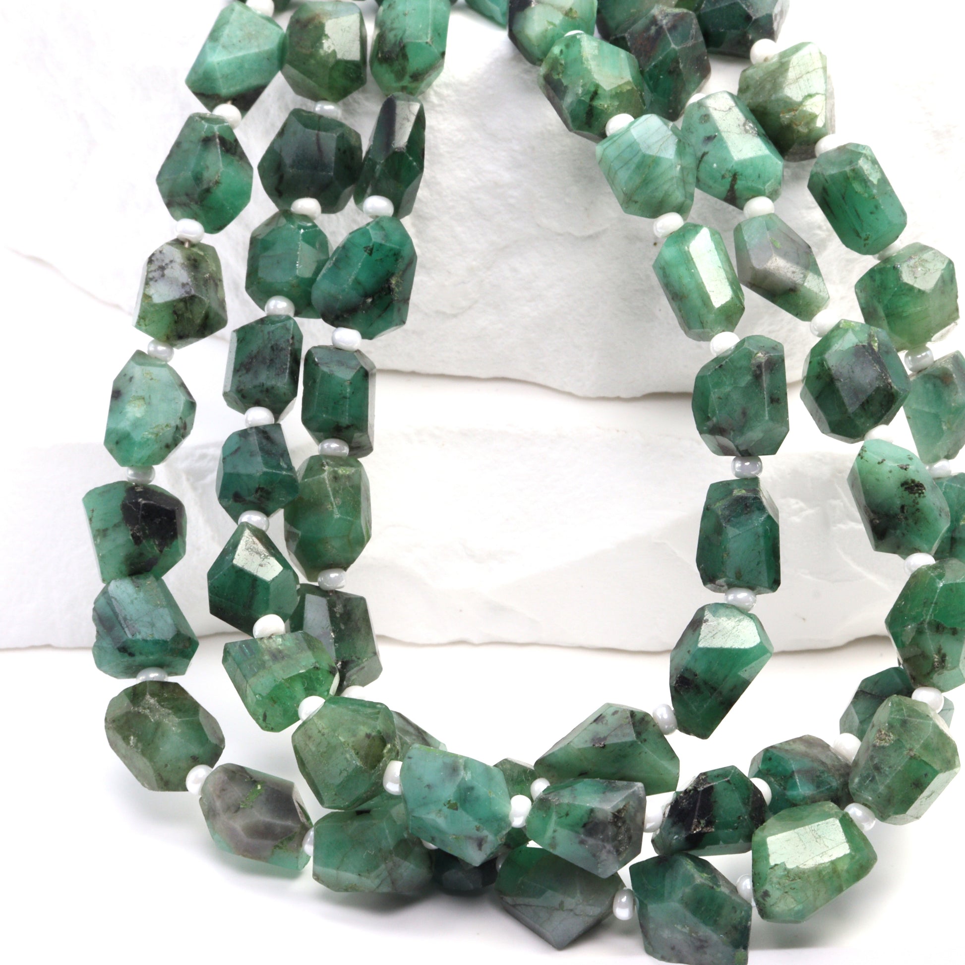 Emerald 10x8 Faceted Nuggets Bead Strand