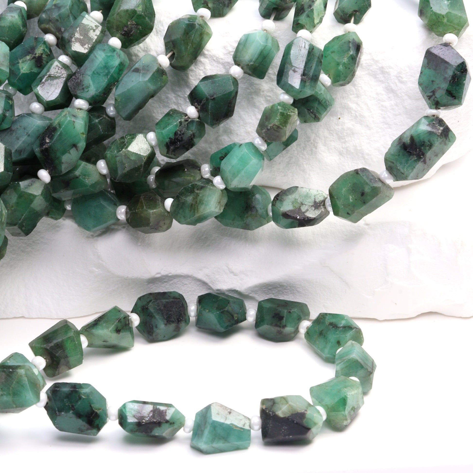 Discover the exquisite beauty of our 13" Full Bead Strand of Emerald Faceted Nuggets. Each bead, meticulously crafted to a size of 10x8mm, showcases the unique allure and radiant green hue of genuine emeralds. These faceted nuggets are perfect for creating stunning jewelry pieces that exude elegance and sophistication. As a trusted gemstone wholesaler, we ensure that every emerald bead we supply is of the highest quality, promising durability and long-lasting beauty. Ideal for jewelry designers and stores, our emerald faceted nuggets offer a touch of luxury and a splash of color to any jewelry design.