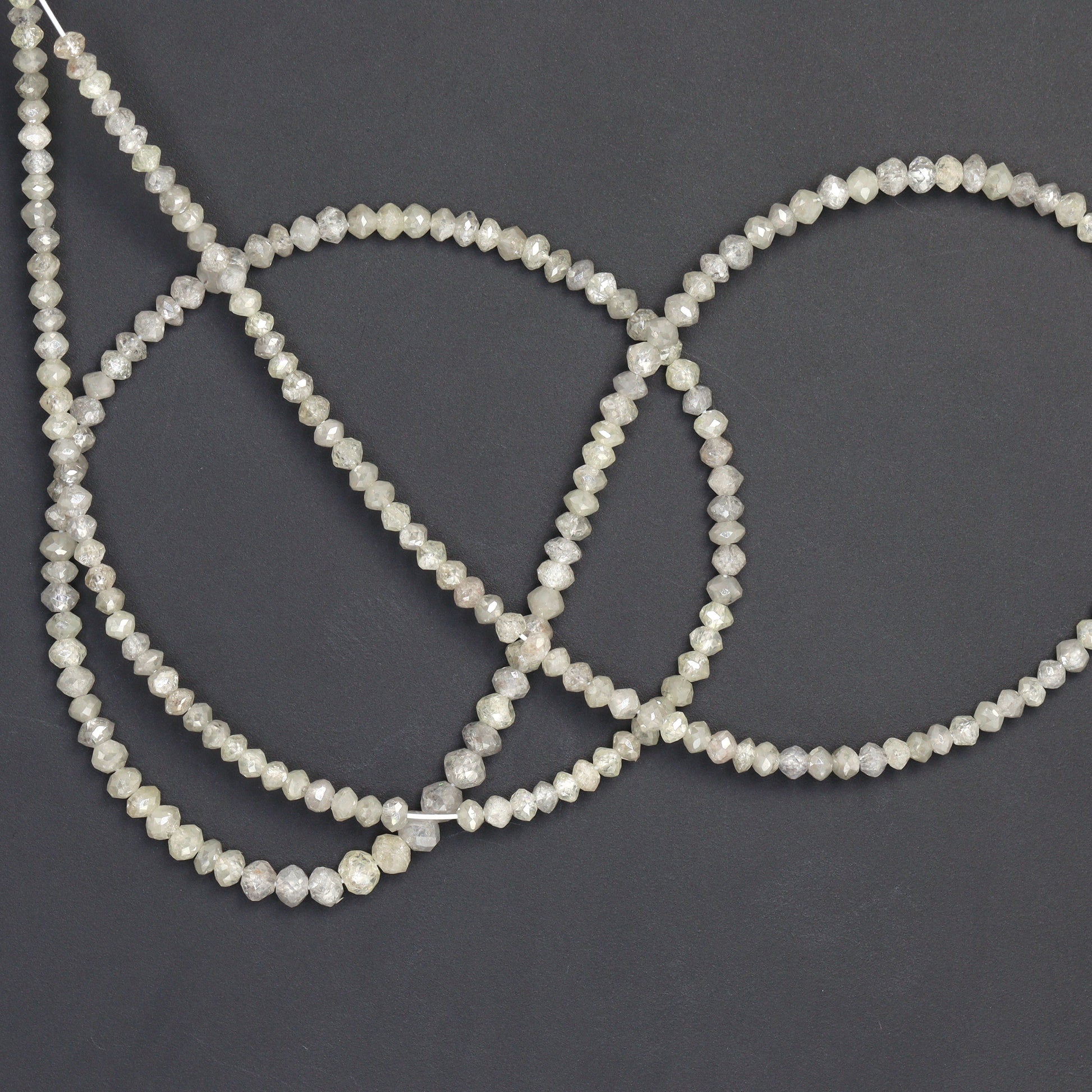 Gray Diamond 2.1mm - 2.7mm Hand Faceted Rondelles Bead Strand