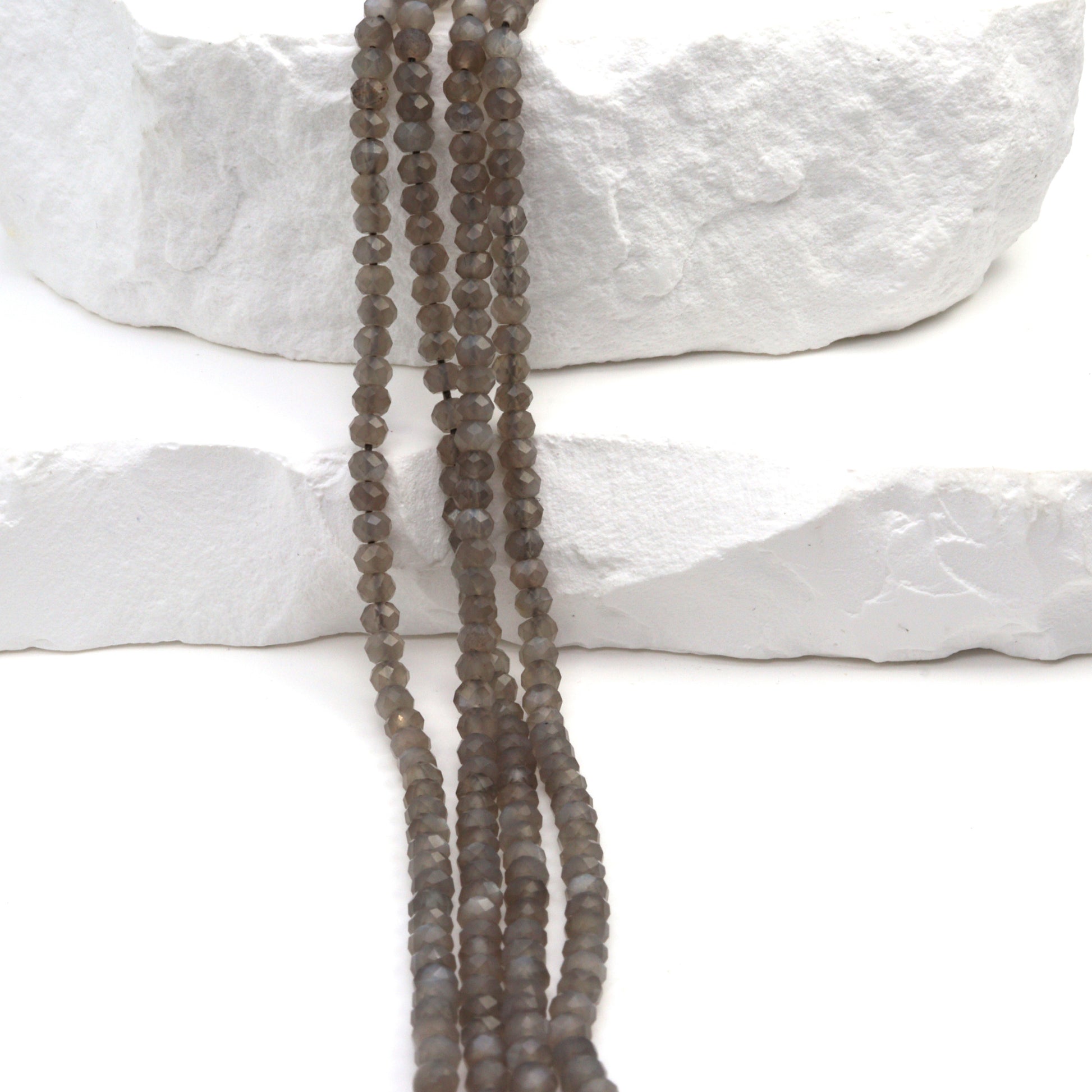 Gray Moonstone 3mm Faceted Rondelles Bead Strand
