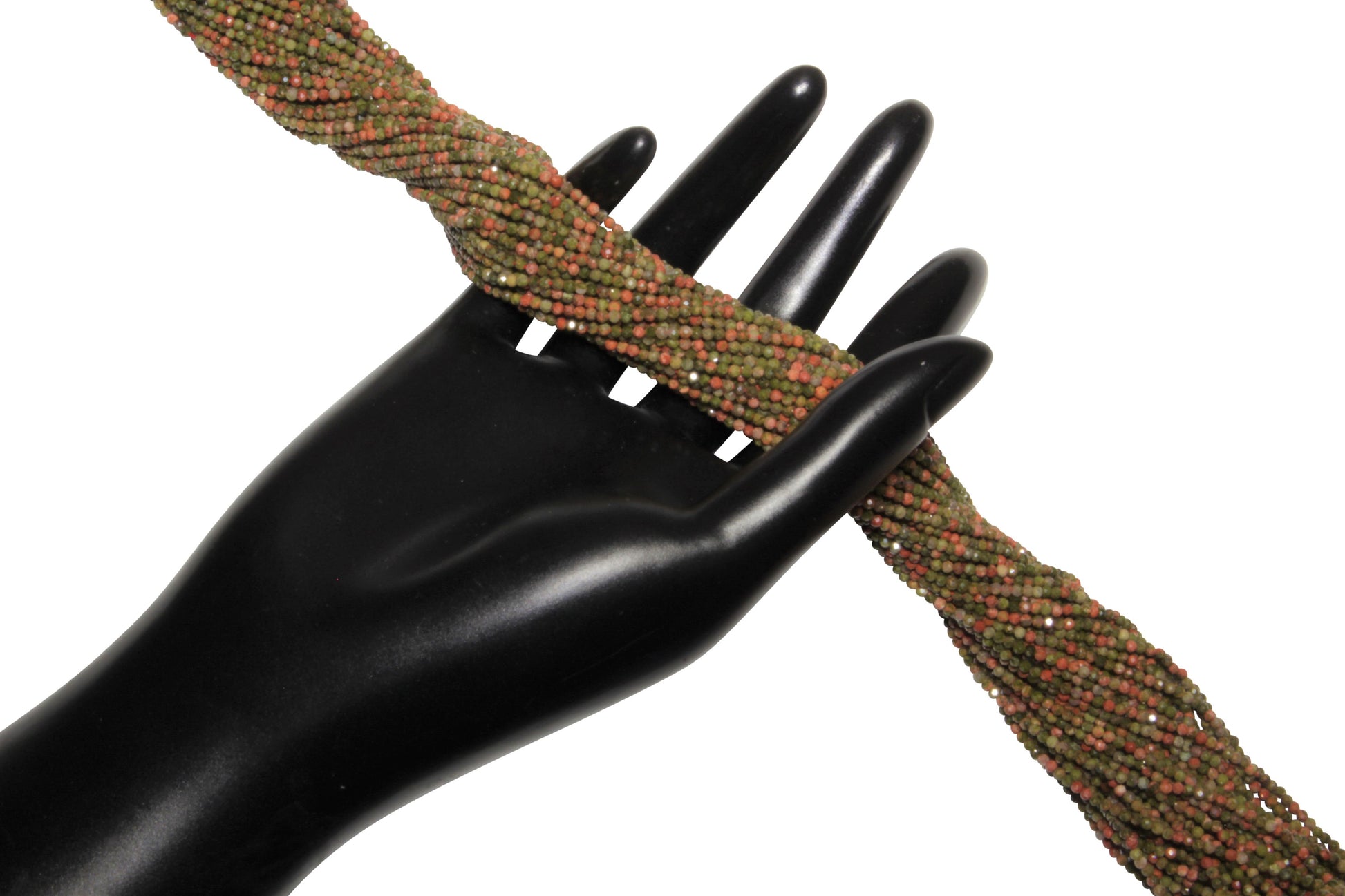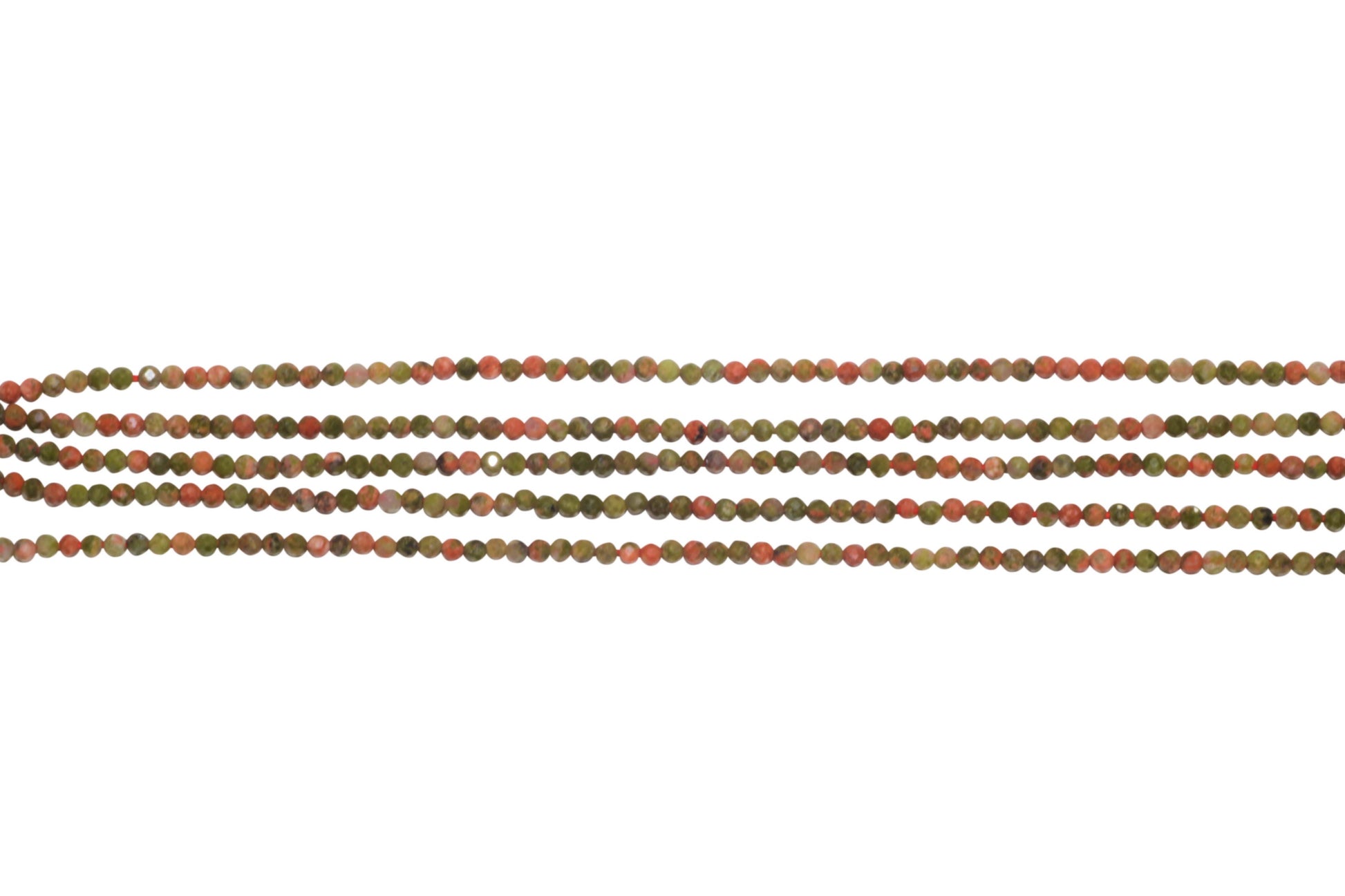 Green and Red Unakite 2mm Faceted Rounds Bead Strand
