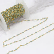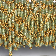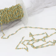 Green Apatite 2.5mm Faceted Rounds Rosary Chain Sterling Silver with Gold Plating Double Bead Wire Wrap Chain by the Foot
