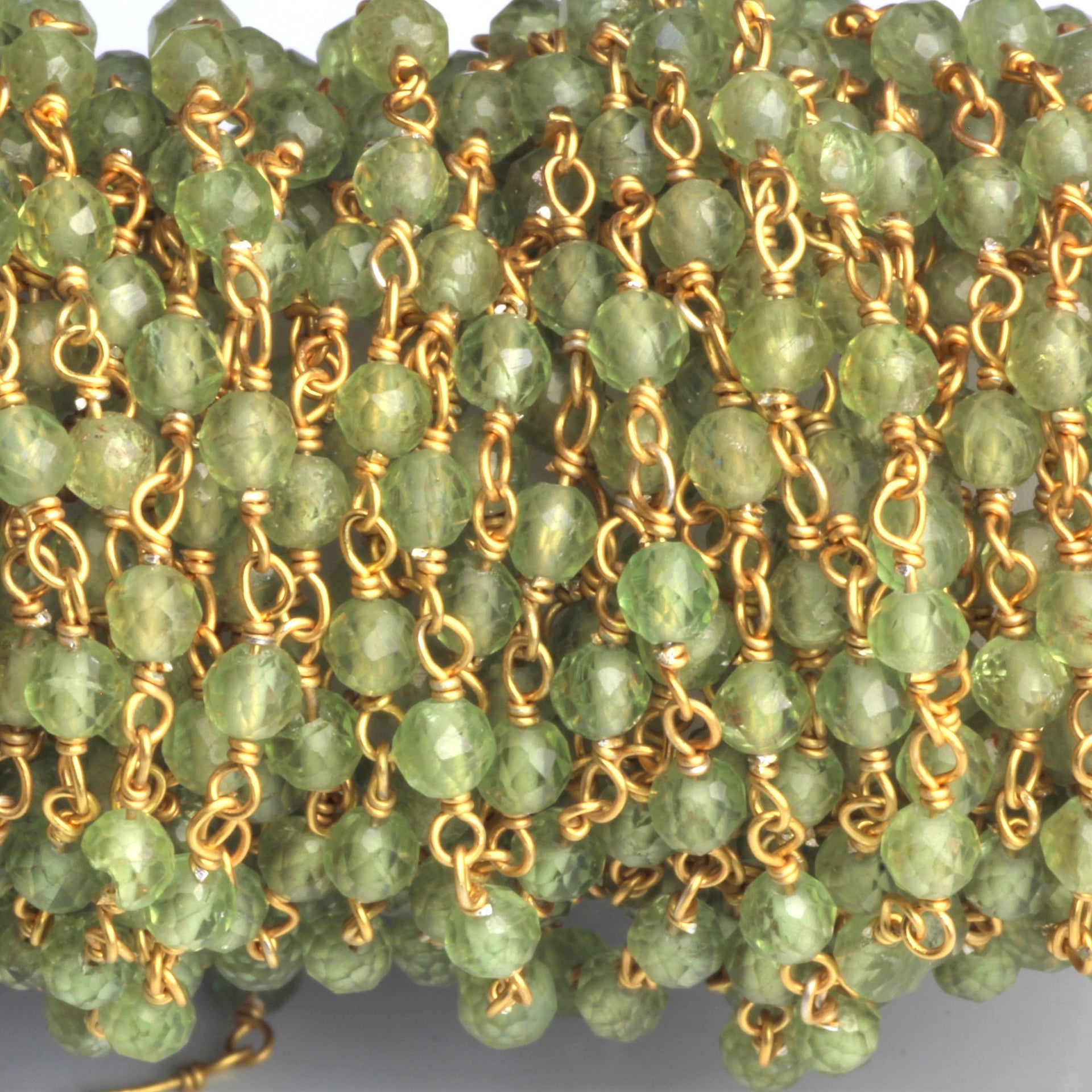 Green Apatite 3mm Faceted Rounds Rosary Chain Sterling Silver with Gold Plating Wire Wrap Chain by the Foot