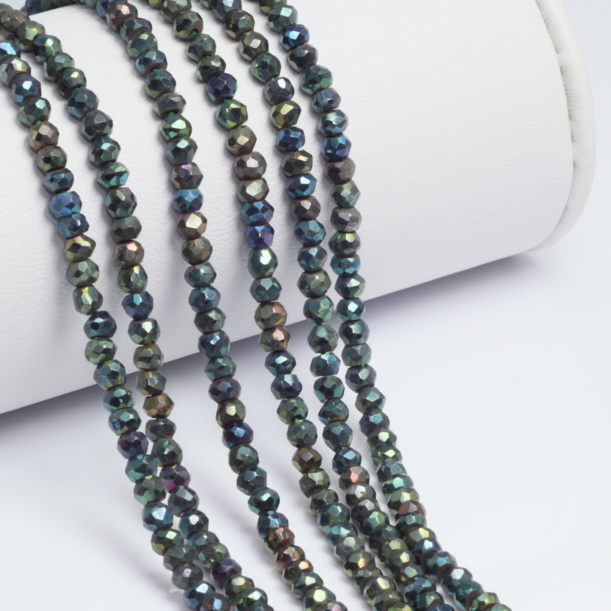 Green Coated Black Spinel 3mm Hand Faceted Rondelles Bead Strand