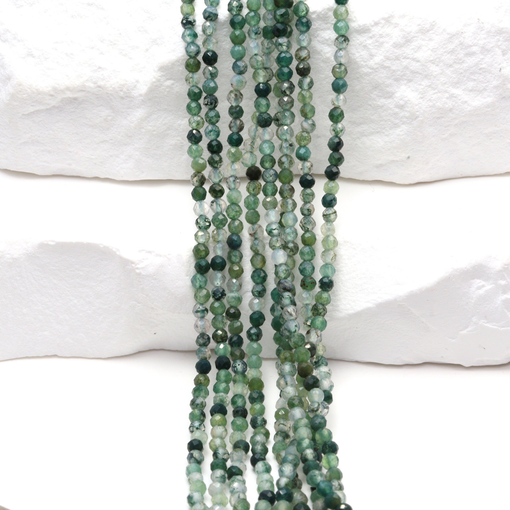 Green Moss Agate 2mm Faceted Rounds Bead Strand