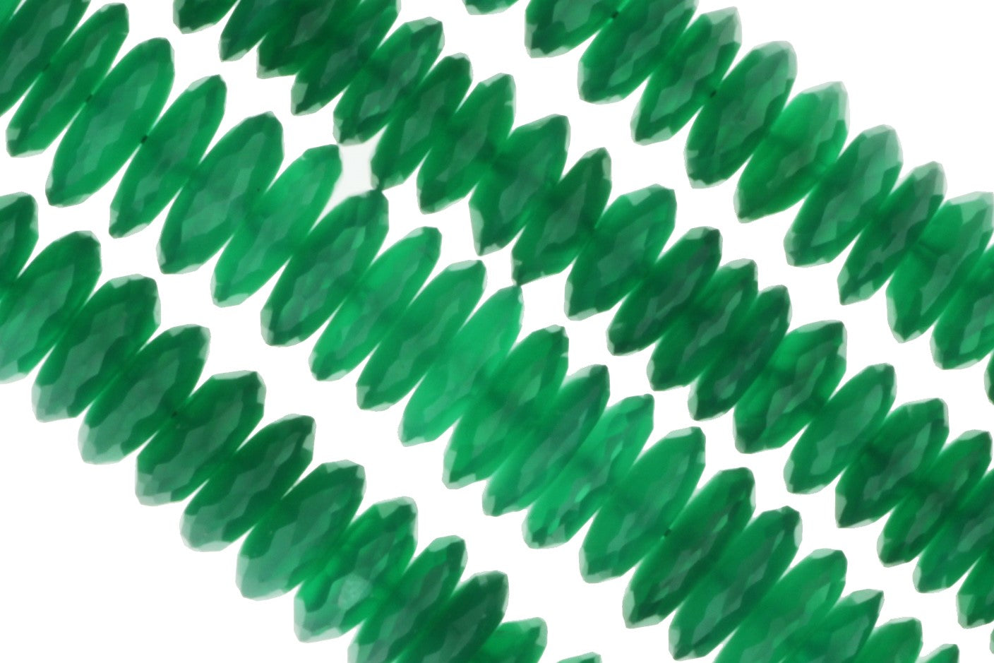 Green Onyx 8mm - 11mm German Cut Faceted Rondelles Bead Strand