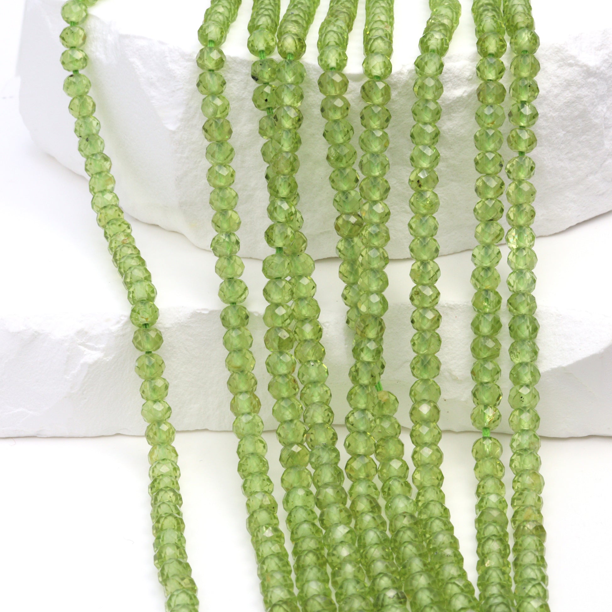 Green Peridot 4mm Faceted Rondelles Bead Strand