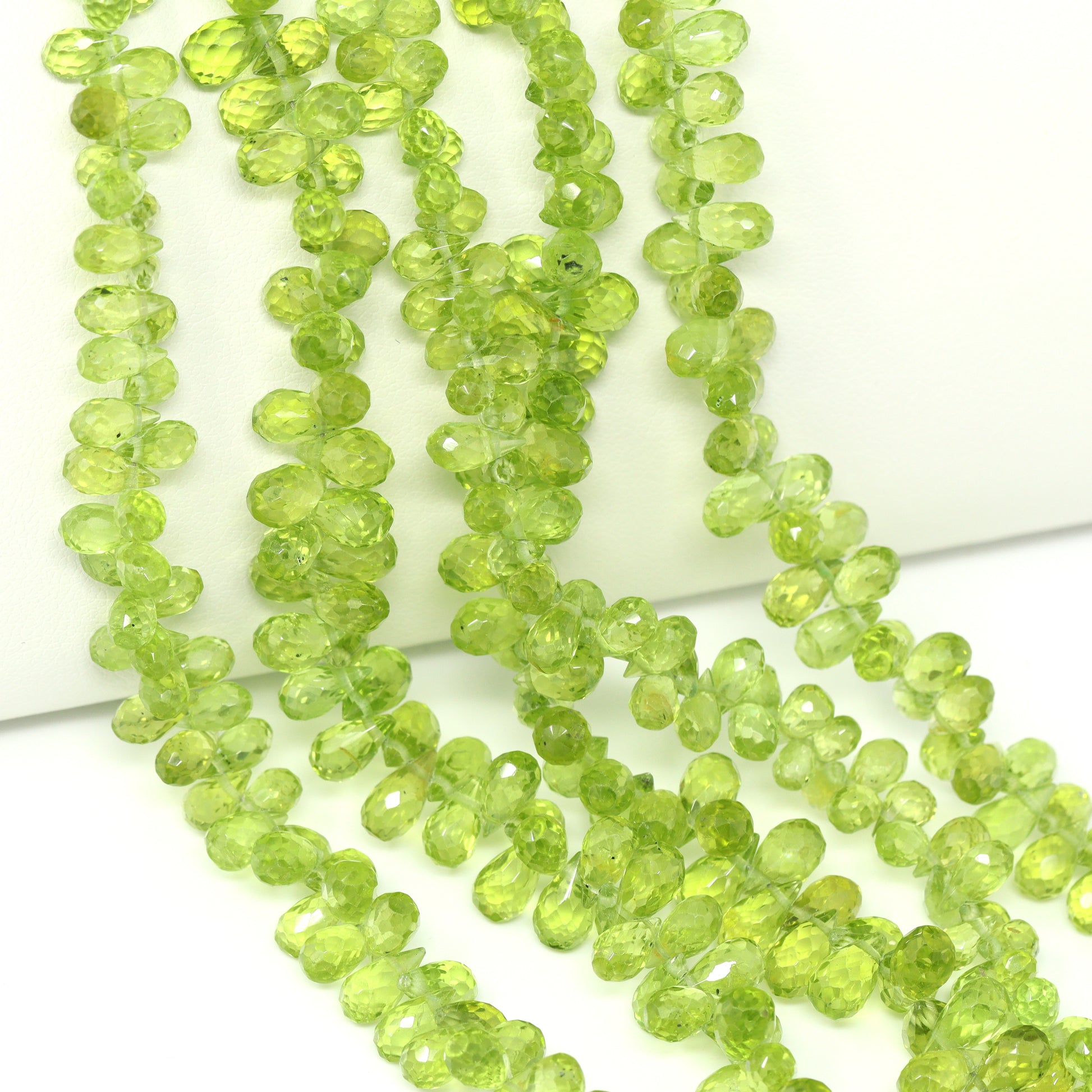 Green Peridot 5x3mm Faceted Teardrop Briolettes Bead Strand