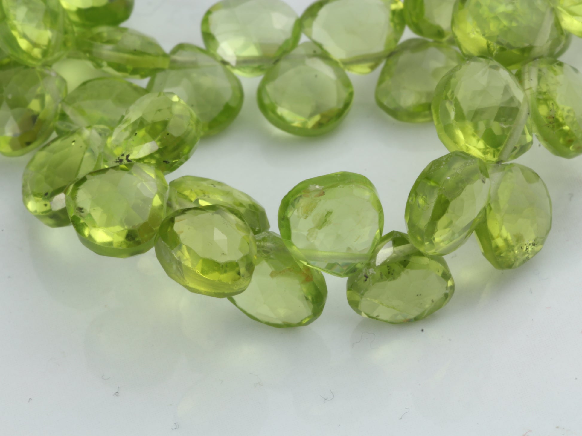 Green Peridot 6mm Faceted Heart Shaped Briolettes Bead Strand