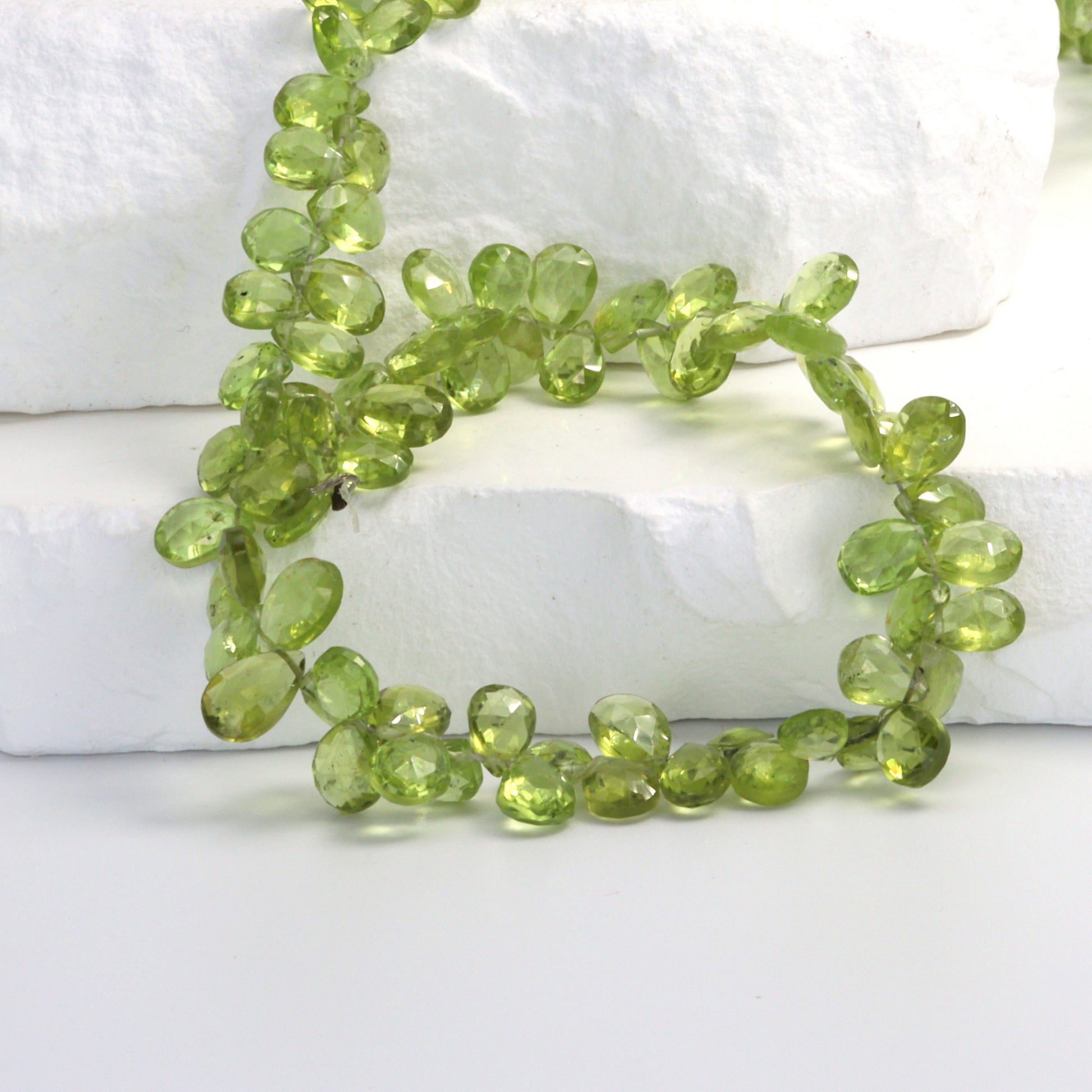 Discover the exquisite beauty of our 8" Full Bead Strand of Green Peridot Faceted Pear Shaped Briolettes. These stunning 7x5mm beads are meticulously crafted to showcase the vibrant green hue and sparkling facets of the peridot gemstone. Ideal for jewelry designers and stores, these beads add a touch of elegance and sophistication to any jewelry piece. As a gemstone wholesaler, we ensure that our beads are of the highest quality, offering a dazzling display of light and color that will captivate your customers. Whether you're creating a statement necklace or a delicate bracelet, these green peridot faceted pear-shaped briolettes will elevate your designs to new heights.