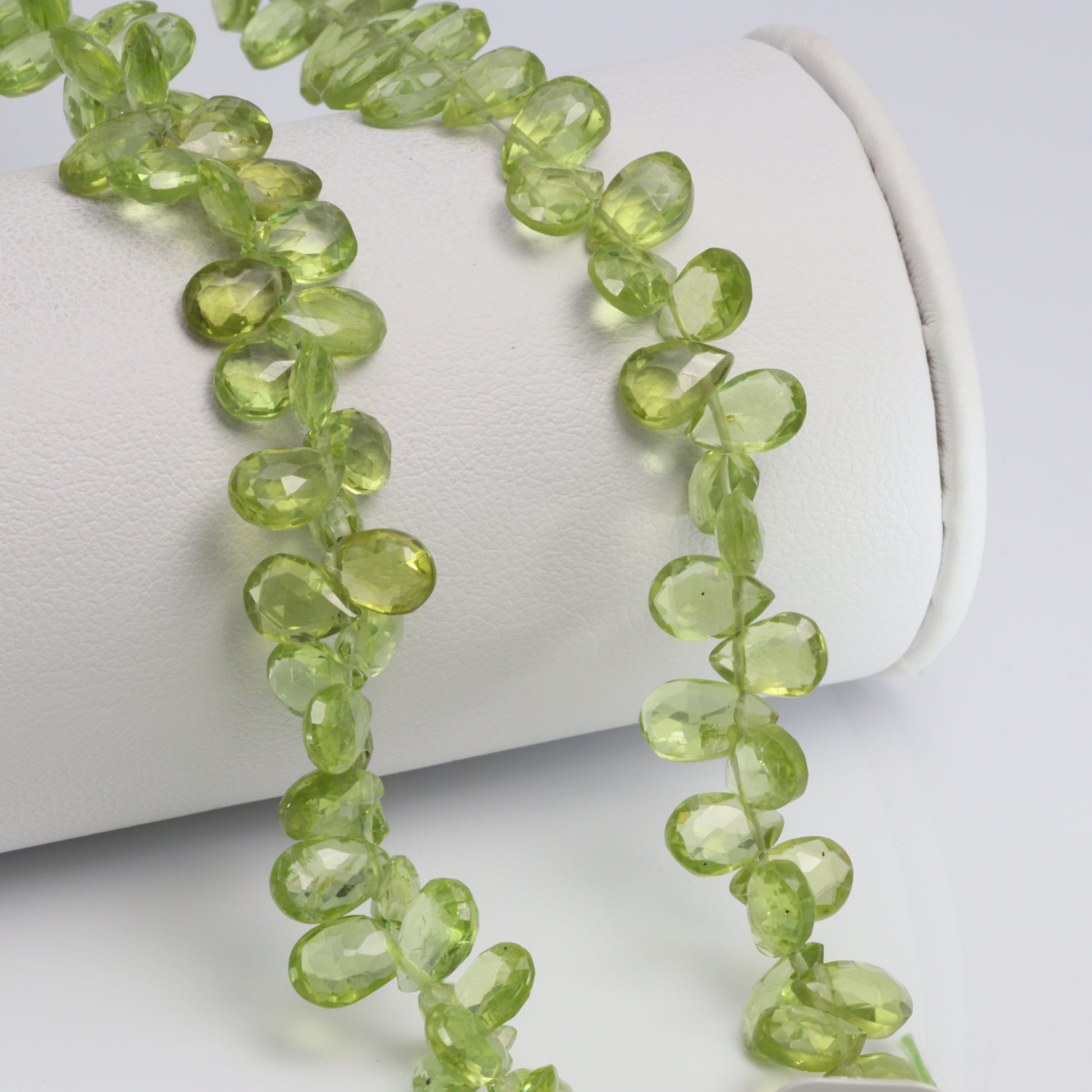Green Peridot 7x5mm Faceted Pear Shaped Briolettes Bead Strand