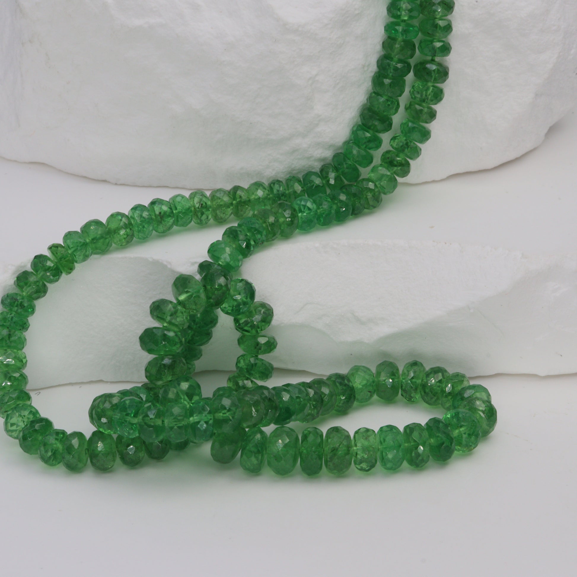 Green Tsavorite 4mm Hand Faceted Rondelles Bead Strand