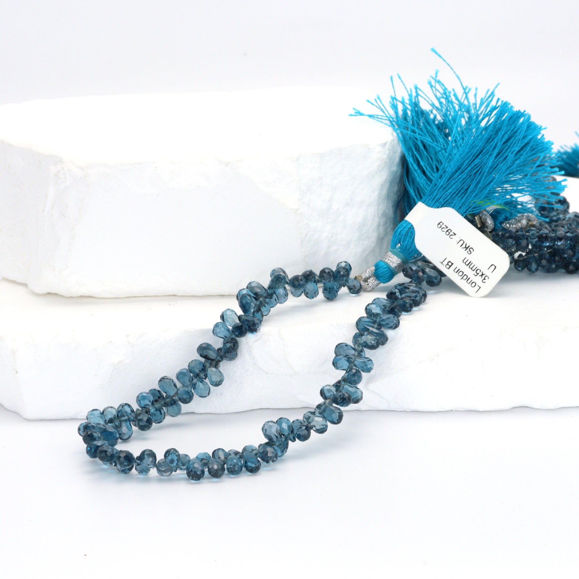 AA London Blue Topaz 3x5mm Faceted Teardrop Briolettes Bead Strand