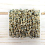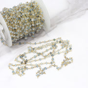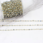 Moss Aquamarine 4mm Faceted Rondelles Rosary Chain Sterling Silver with Gold Plating Wire Wrap Chain by the Foot