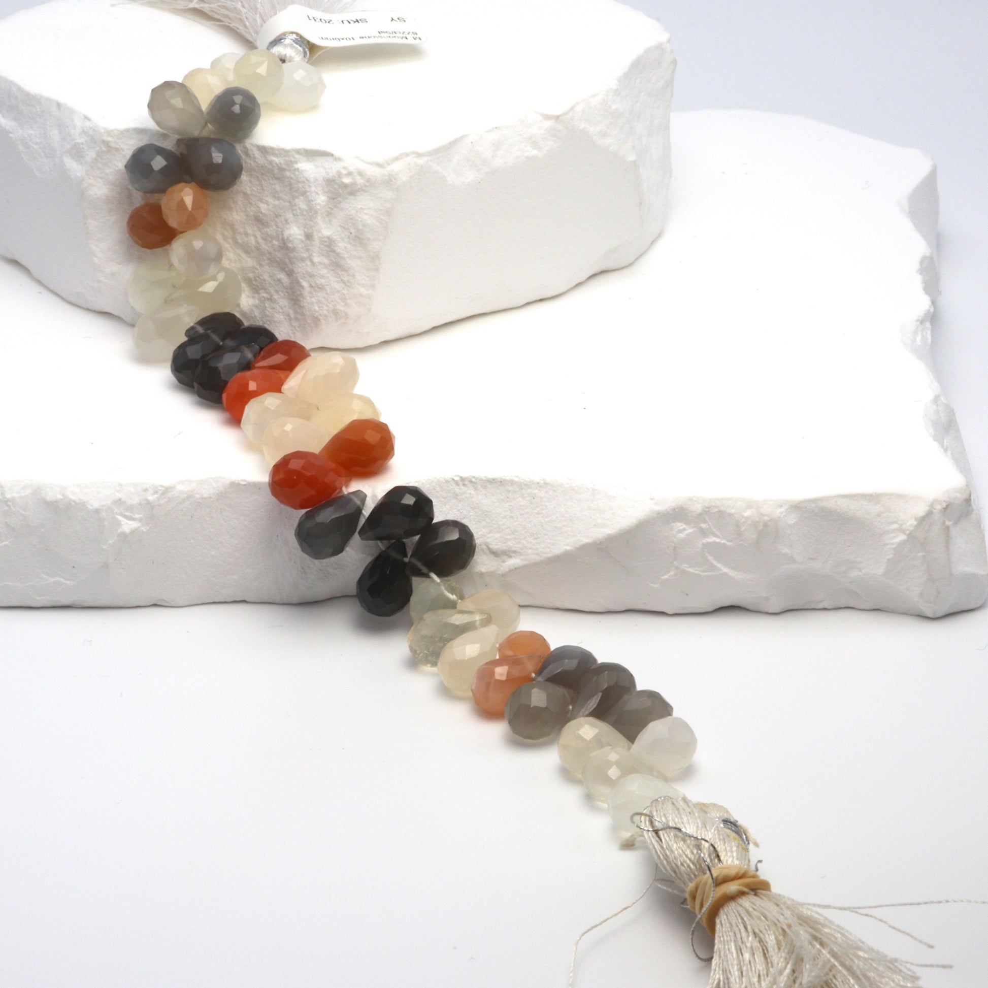 Discover the enchanting allure of our 7" Full Bead Strand of Multi Moonstone Faceted Teardrop Briolettes. Each strand features a captivating array of 10x6mm beads, meticulously cut into a teardrop shape to enhance their natural brilliance. These multi moonstone beads exhibit a mesmerizing play of colors, ranging from soft whites to vibrant blues, making them a versatile choice for any jewelry design. As a gemstone wholesaler, we ensure that every bead is of the highest quality, perfect for creating unique and stunning pieces. Whether you're a jewelry designer or a jewelry store owner, these multi moonstone faceted teardrop briolettes will add a touch of elegance and sophistication to your collection.