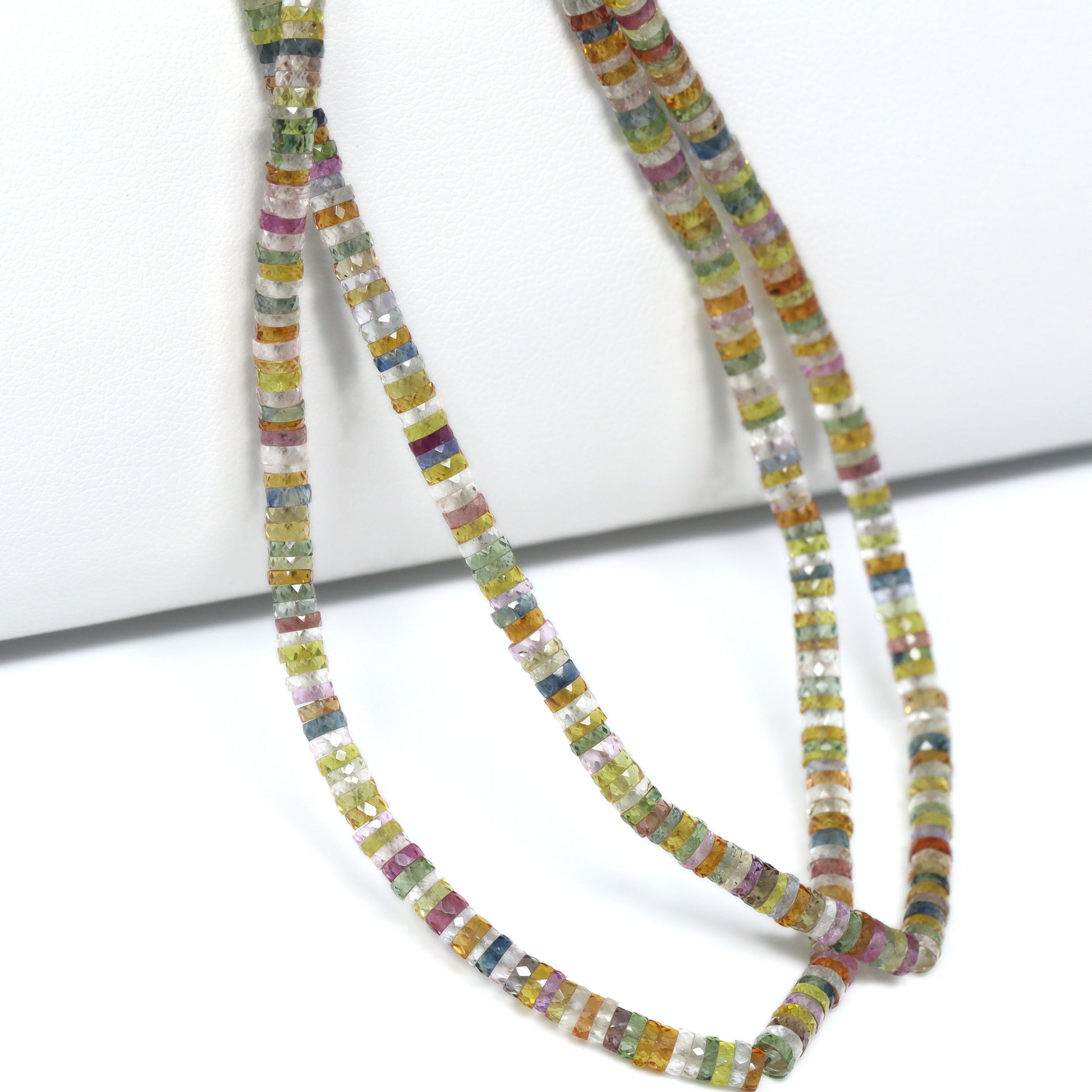 Multi Sapphire 3mm Hand Faceted Tires Bead Strand