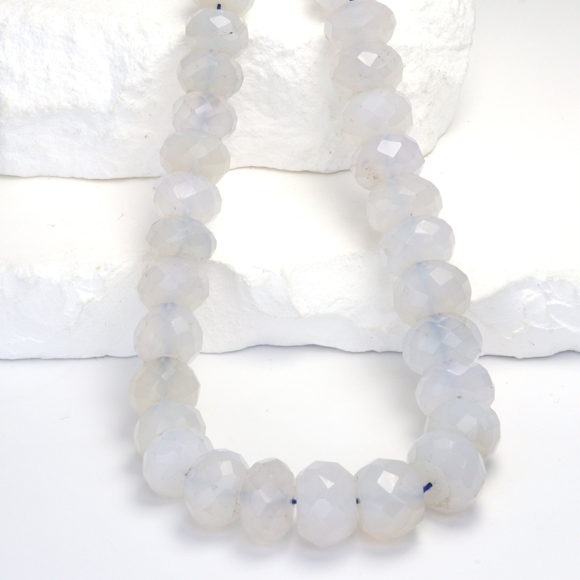 Natural Blue Chalcedony 12mm Faceted Rondelles