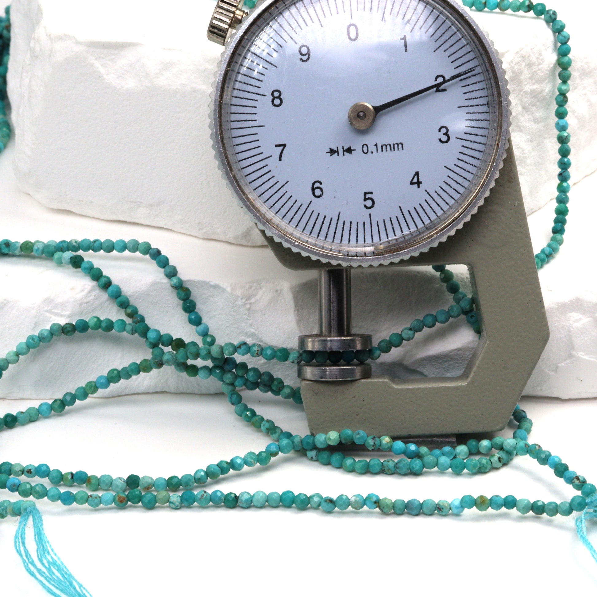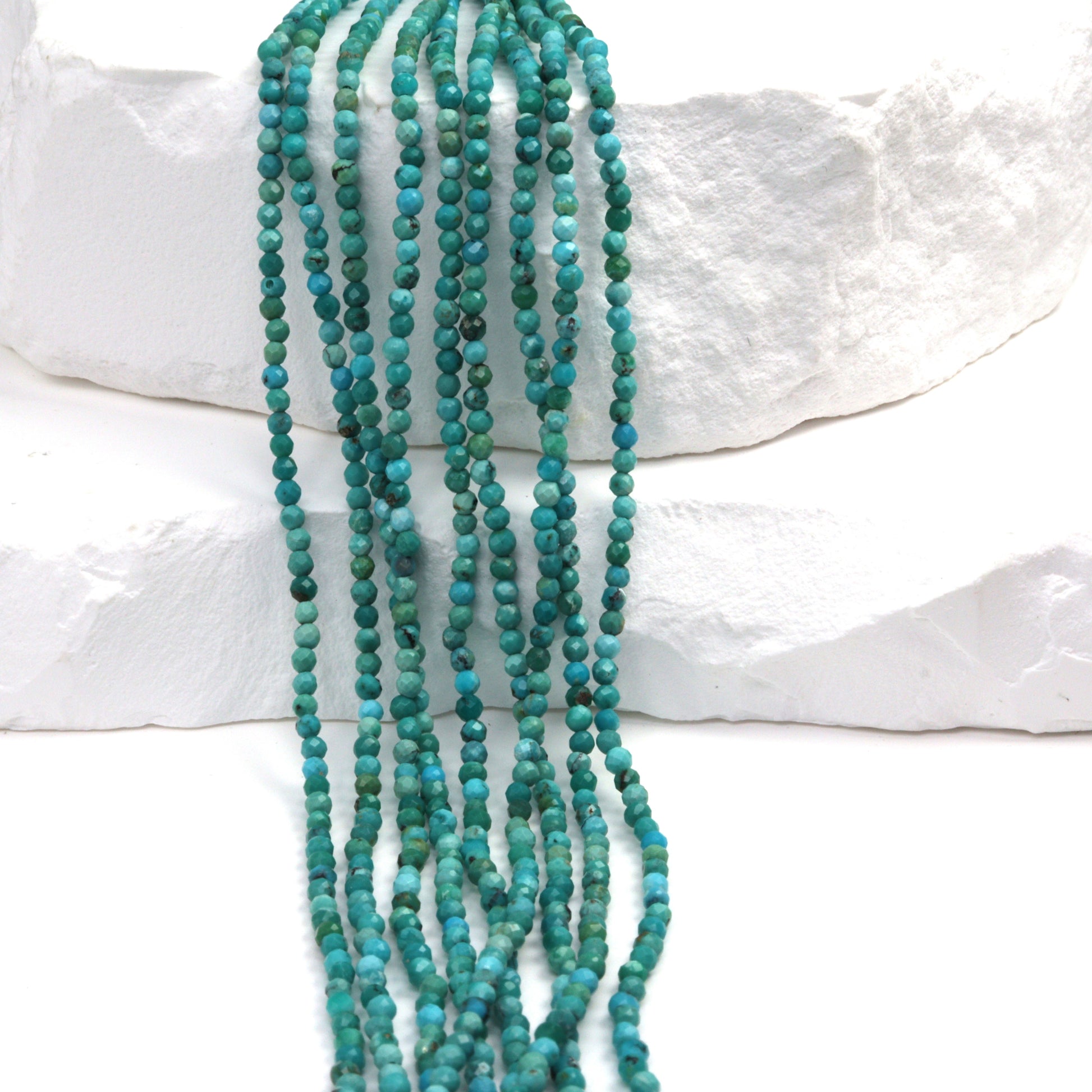 Natural Light Blue Turquoise 2mm Faceted Rounds Bead Strand
