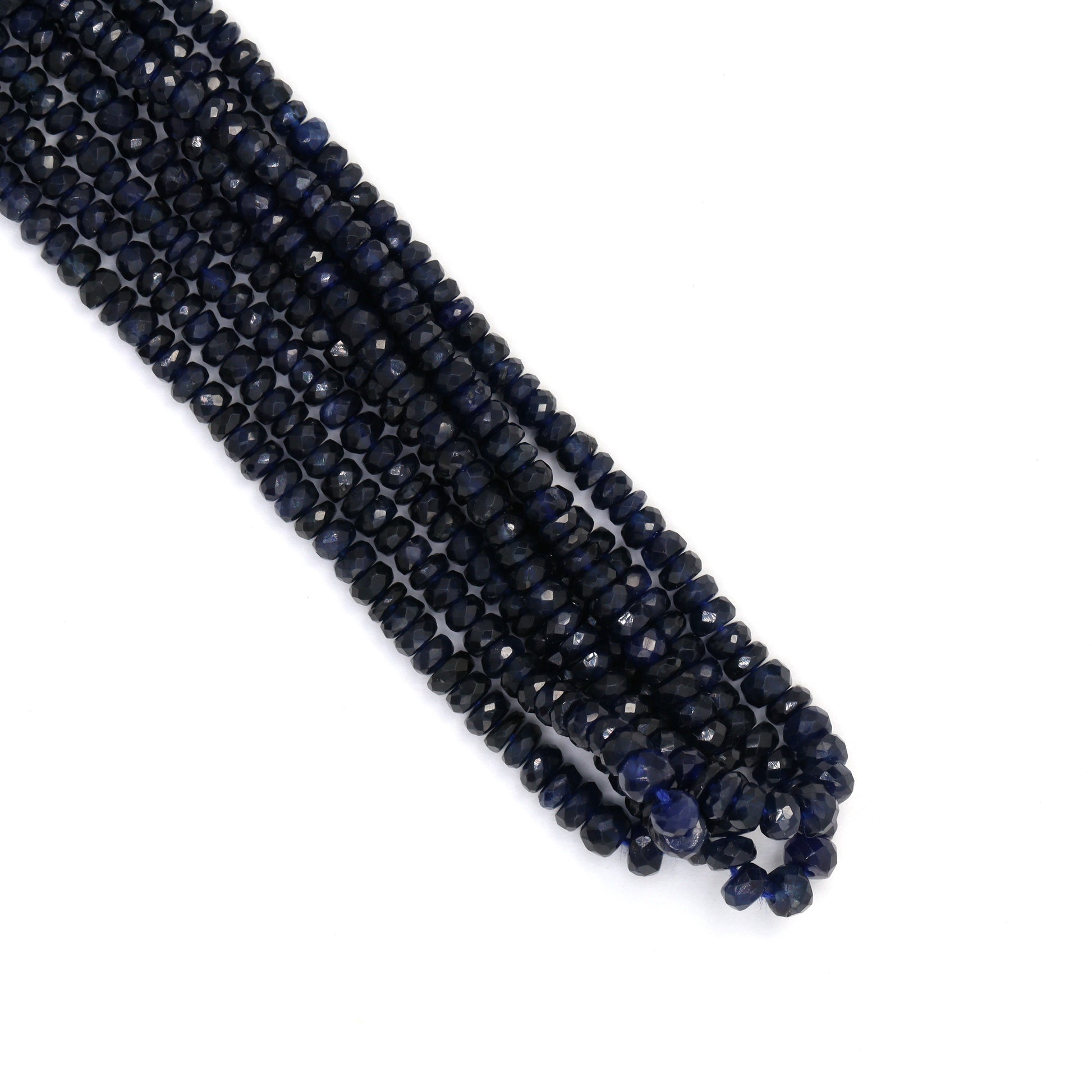 Navy Blue Sapphire 2mm - 4mm Hand Faceted Rondelles Bead Strand