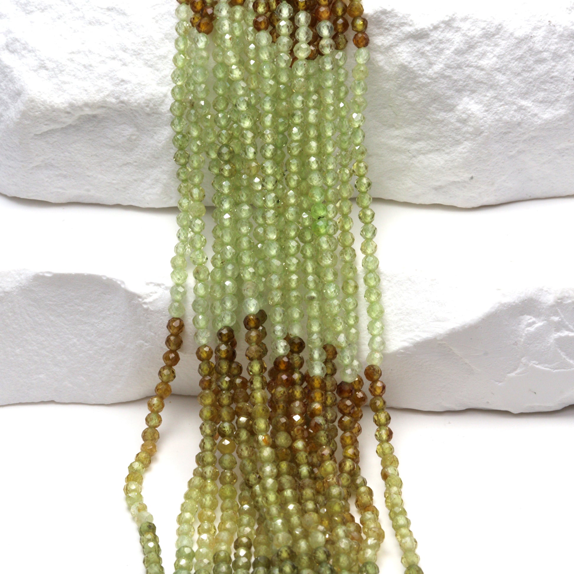 Ombre Green Grossular Garnet 2mm Faceted Rounds Bead Strand