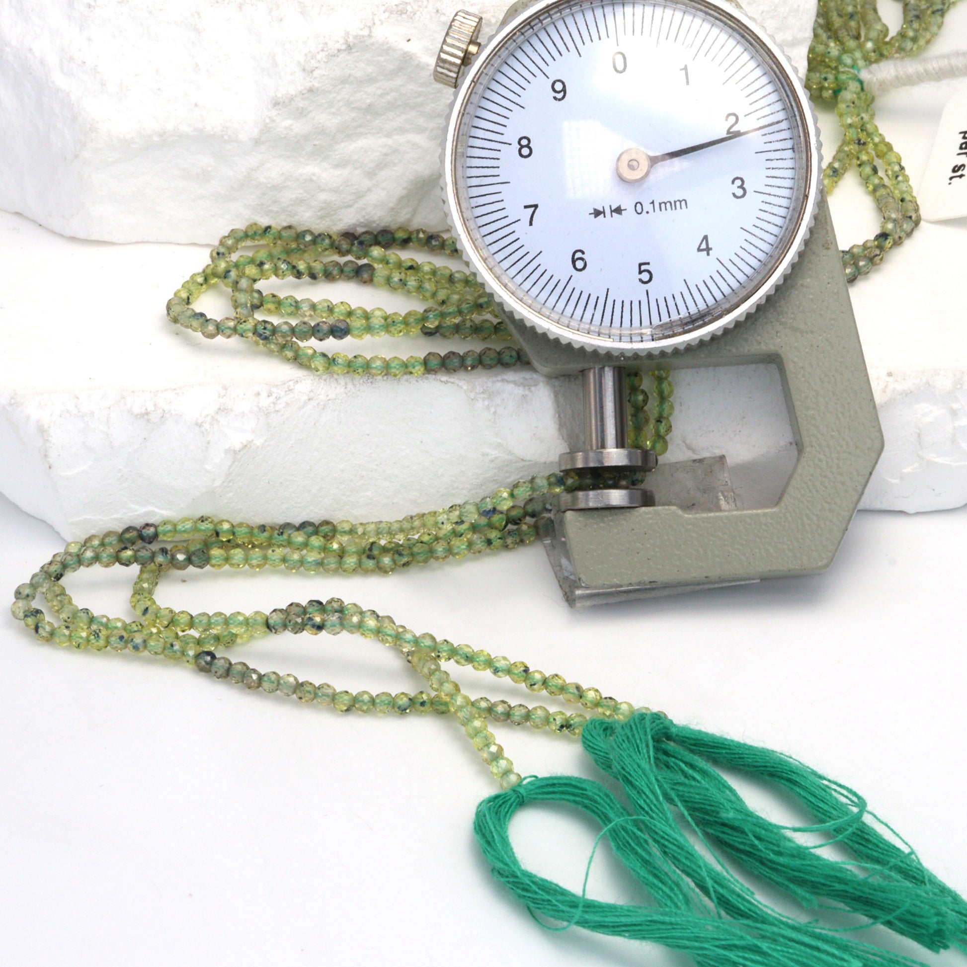 Elevate your jewelry designs with the serene elegance of our Ombre Green Sapphire 2mm Faceted Rounds Bead Strand, a premier selection for designers and retailers aiming to offer extraordinary, eye-catching pieces. This exquisite strand captures the essence of nature's palette, transitioning smoothly from the softest mint greens to the deep, luxurious forest hues. Each 2mm bead is precision-faceted to maximize light reflection, creating a dazzling display of brilliance and depth that brings the natural beauty of green sapphire to life. Perfect for crafting sophisticated, high-end jewelry, these beads offer versatility for creating everything from delicate, understated pieces to bold, statement accessories. Green sapphire, celebrated for its symbolic connections to wisdom, integrity, and trust, adds not only a visual appeal but also a meaningful depth to your creations. Ideal for those seeking to infuse their designs with a touch of refined elegance and the tranquility of nature's greens, our Ombre Green Sapphire Faceted Rounds Bead Strand promises to enchant and inspire, making each piece a coveted treasure.