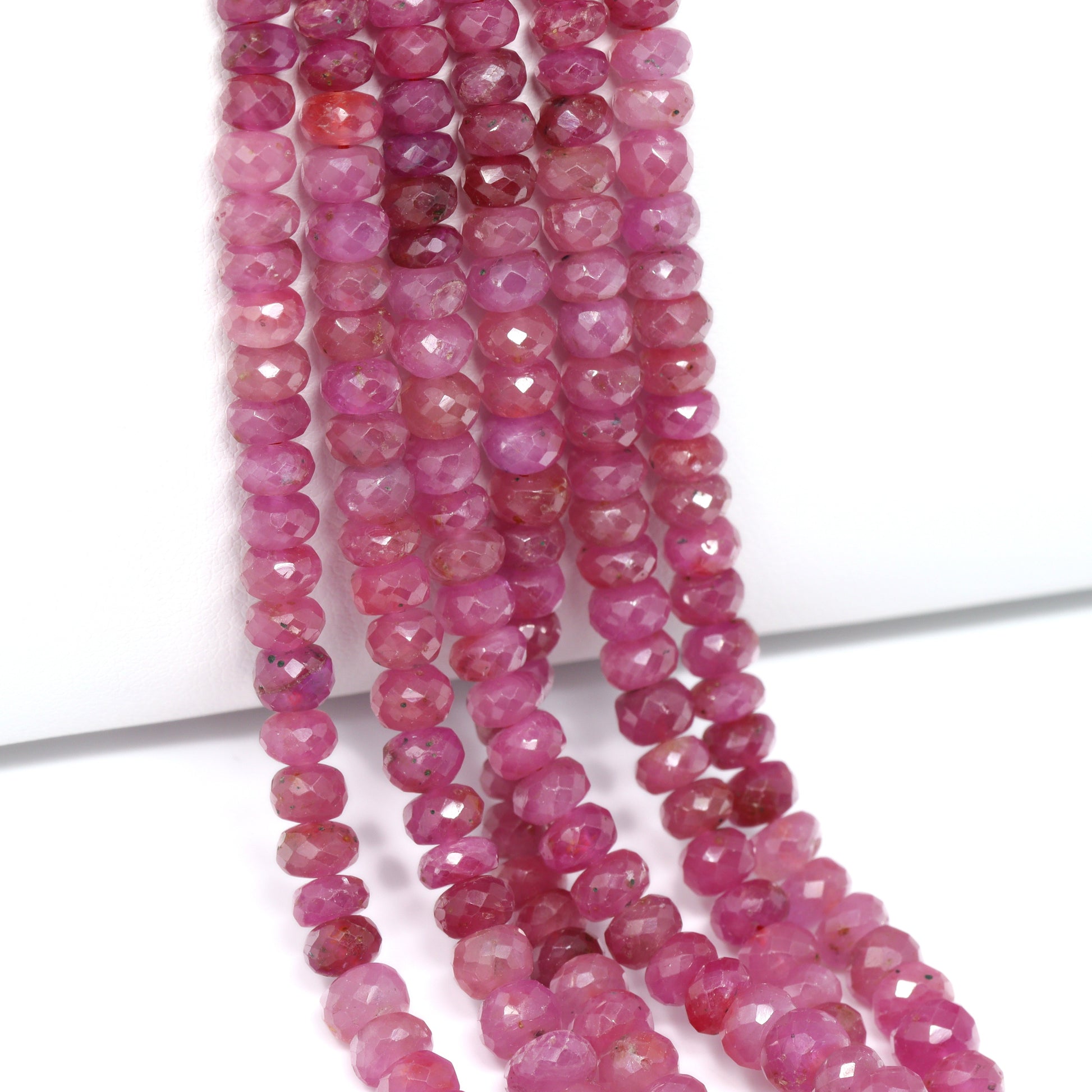 Ombre Pink Sapphire 4mm - 5.5mm Hand Faceted Rondelles Bead Strand